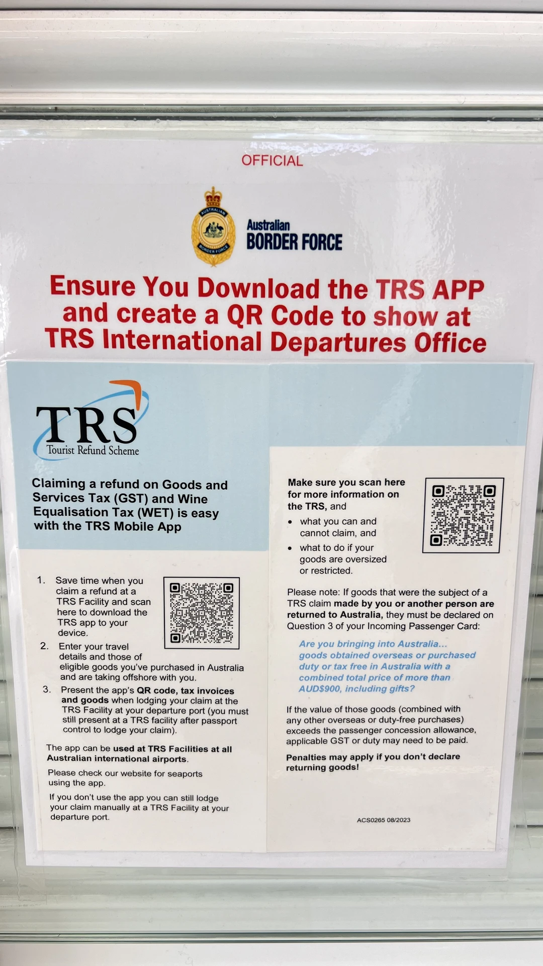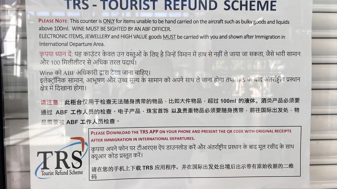 退税的材料:TRS填报后显示的二维码、机票、护照、购物小票的原件、买东西用的银行卡(我看前面办理的时候应该不是必须的,有人出示也有人不出示)。