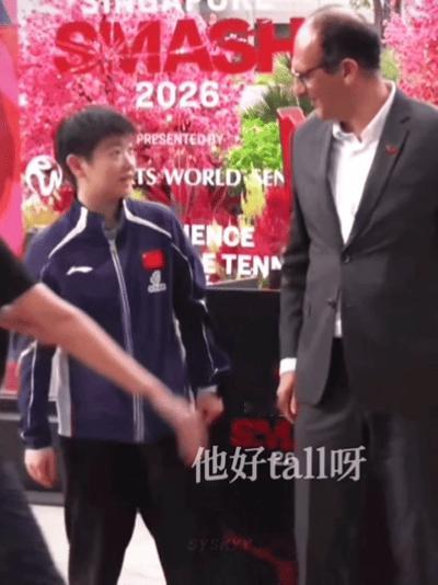 莎莎真的是惹人喜欢,谁看到她都得不自觉的要主动聊一下。 新加坡大满贯抽签仪式结束,合影的时候,这位高个子的领导,站在莎莎旁边, 主动问“你好”,莎莎微笑回应。 实在是太高了,莎莎看着他也是笑了。 合影结束,另外一位领导走到莎莎旁边,和莎莎聊天,莎莎右侧的人,投来一排眼神, 一排充满了敬佩的眼神。 不喜欢她,确实很难,这就是她的魅力!