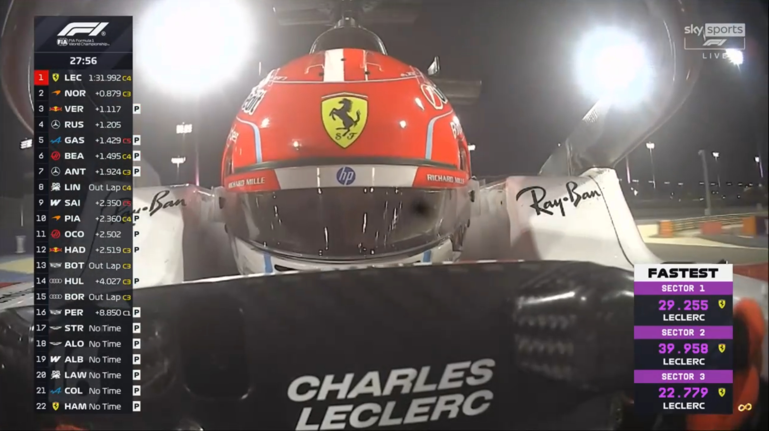 勒克莱尔刚刚做出了巴林冬测至今最快的一圈——1:32.655F12026F1季前