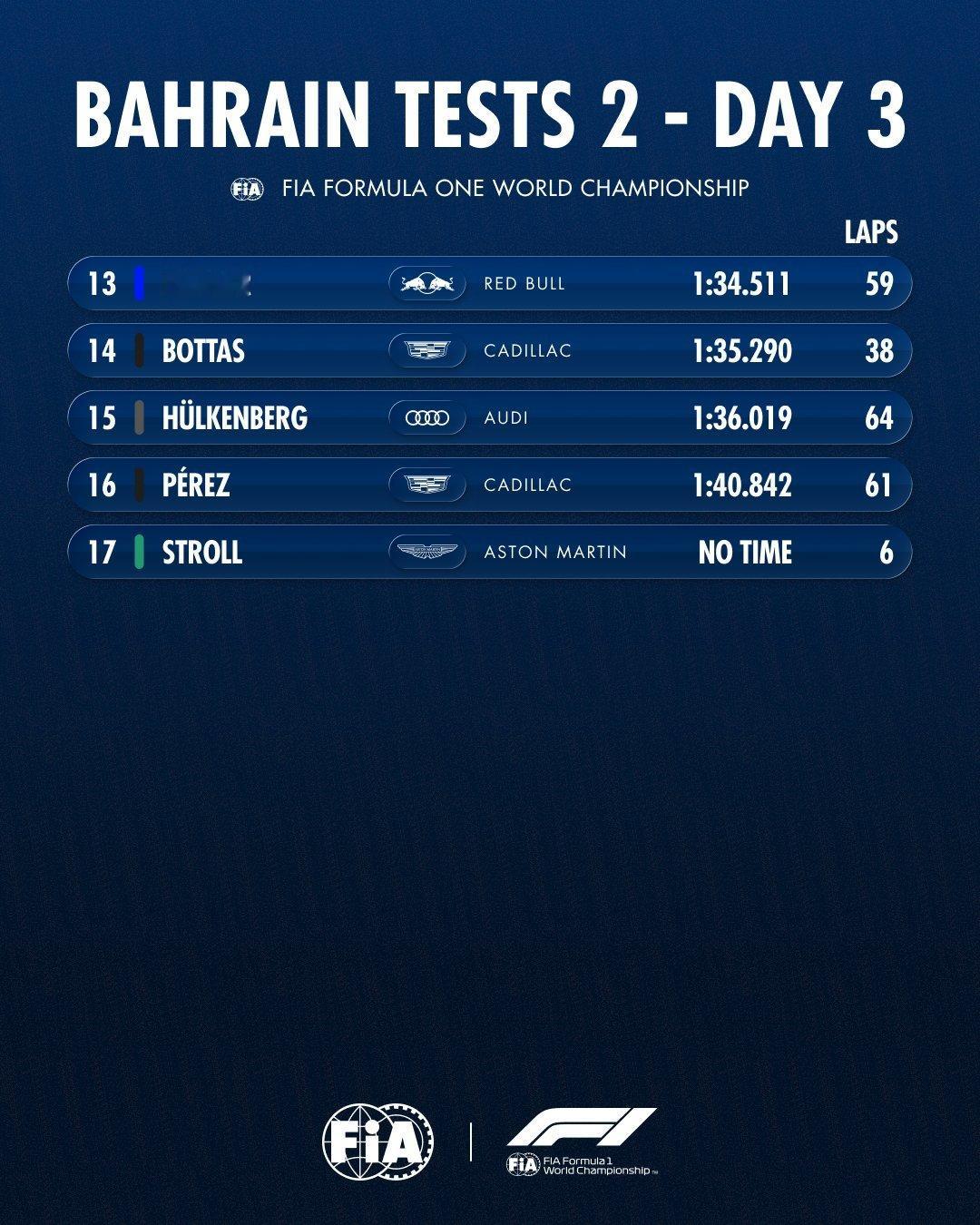 2026f1季前测试 巴林第二轮季前测试最后一天,勒克莱尔使用C4跑出1:31.992最快圈,诺里斯和维斯塔潘分列二三位