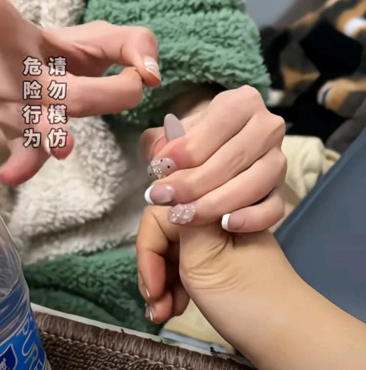 卸美甲的另类方式,只见女子美甲的手指被捏着, 另一个女子手指一弹,崩, 美甲就掉了, 太厉害了, 一弹一个不吱声! 网友说,姐妹,这手法是干护士出身的吧? 跟弹药瓶一个姿势, 建议别轻易尝试, 有些都是侥幸罢了, 手法不好的,轻则淤青, 重则直接手指甲一起飞。