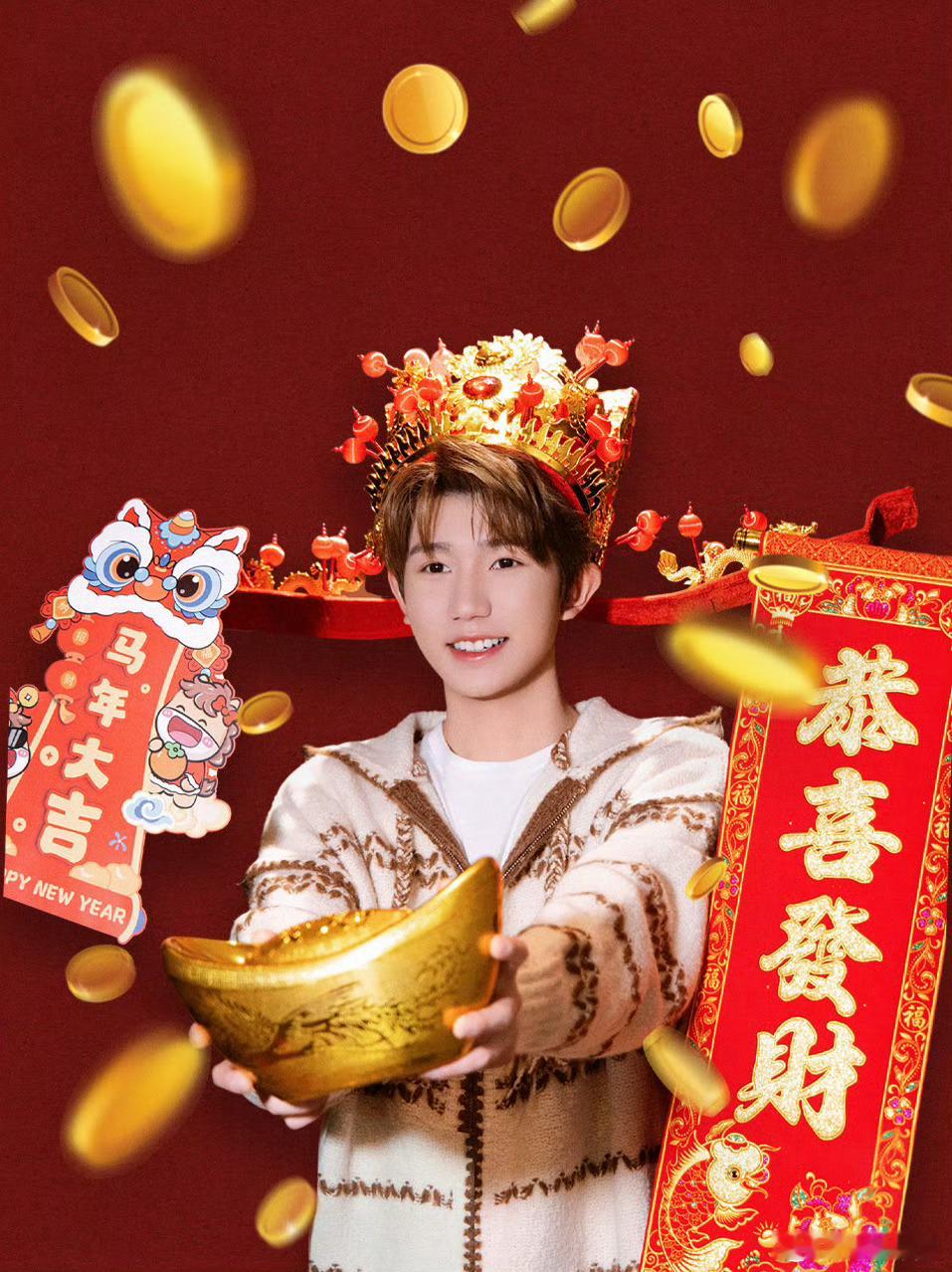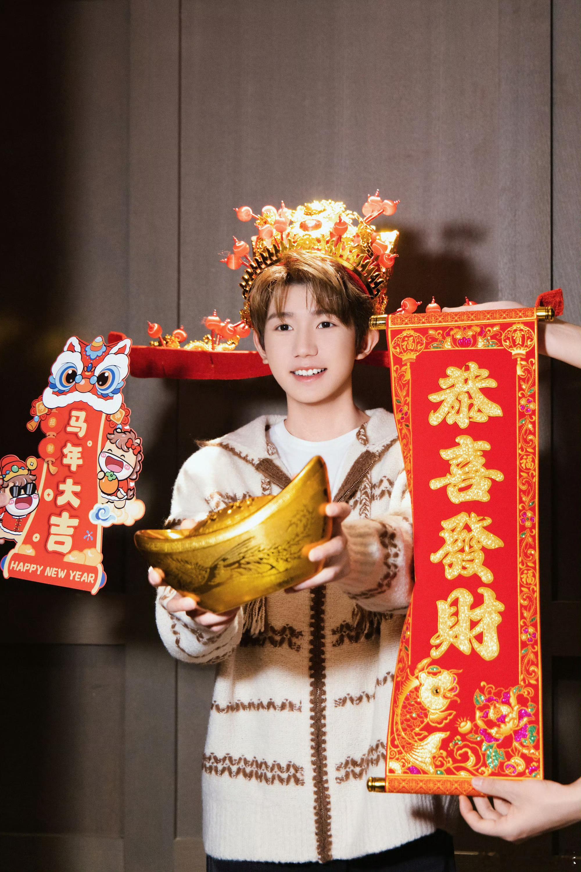 王源初五迎财神王源初五财源滚滚王源大年初五,开门见喜!祝大家财“源”滚滚,五福