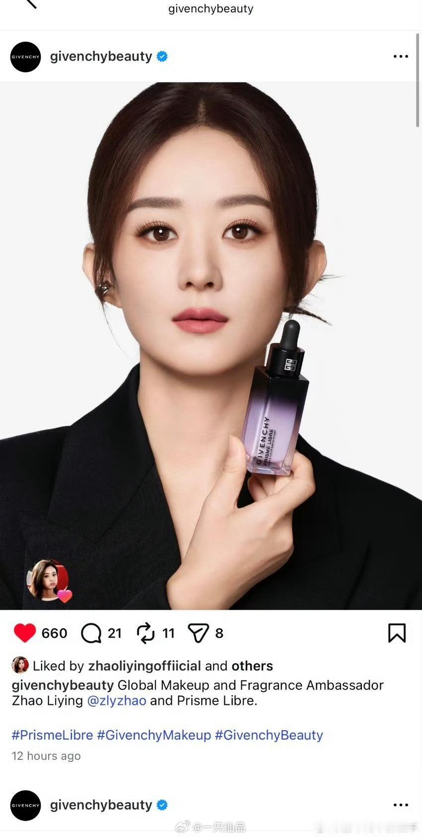 赵丽颖纪梵希Instagram新图,我丽好美好帅好权威