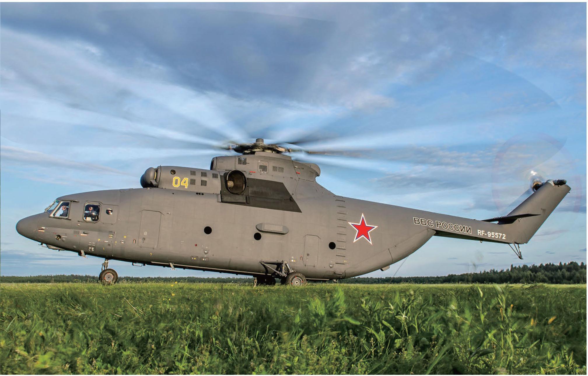米-26是当今世界上仍在服役的最重、最大的直升机,该机的机舱内载和舱外外挂质量均可达20吨,与美国C-130运输机载荷能力相当。米-26机身为全金属铆接,后舱门备有折叠式装卸跳板。机身下部为不可收放前三点轮式起落架,每个起落架有两个轮胎,前轮可操纵转向,主起落架的高度还可作液压调节。米-26飞行设备齐全,能满足全天候飞行需要,如气象雷达、多普勒系统、地图显示器、水平位置指示器、自动悬停系统、通信导航系统等。它的机载闭路电视摄像仪可对货物装卸和飞行中的货物姿态进行监控。