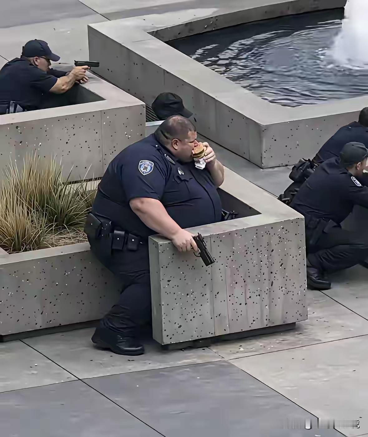 大家觉得是不是美国的警察都好敬业,吃东西都是不一离岗,时刻提高警提,枪不离手!在美国当警察也是觉得又献慕的工作,但是又觉得不容易呀!以上仅供参考,属个人意见。