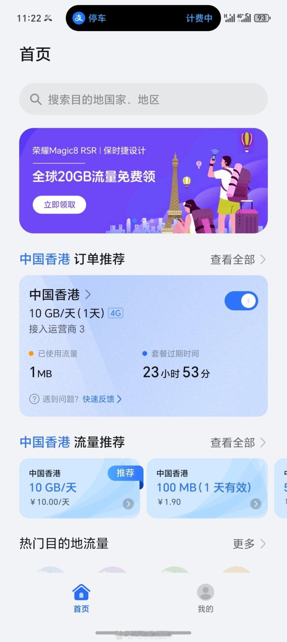 当我付费开通了 10GB 套餐之后,我才发现荣耀 Magic 8 RSR 送了 20GB 全球流量…