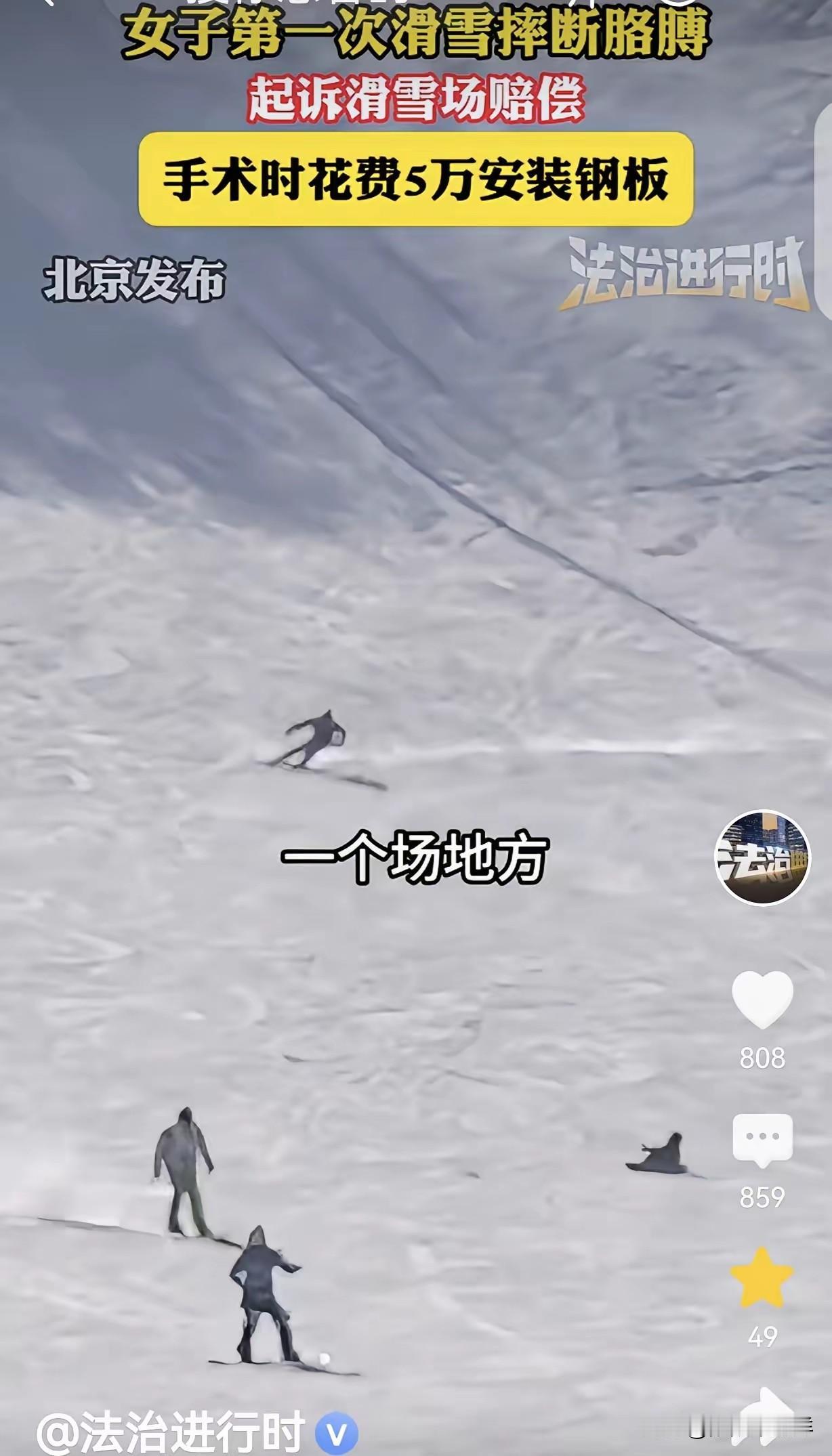“离大谱了!”北京,一女子第一次滑雪摔断胳膊,打了一个钢板,10几颗钢钉,手术花50000。女子一口咬定,滑雪场没保护好她的安全,她躺在雪道呼救没人搭理她,滑雪场却认为,雪帽很厚,呼救谁都听不见,女子不会滑雪,也是第一次滑雪,就应该按照自己的水平选择雪道,女子自己半斤八两,硬着头皮滑,跟滑雪场有啥关系?网友:你要能告成功,我马上告公厕返还我割痔疮的费用。 这事在网上一炸,评论区直接分成了两派,吵得比雪道上的滑雪板还响。 先说说这姑娘的情况。她叫李娜(化名),那天是被闺蜜拉去的,说滑雪是“冬天最酷的事”。她连雪板怎么穿都得问三遍,硬着头皮就上了中级道。结果刚滑出去没十米,脚下一滑,整个人像个破布娃娃一样飞了出去,右胳膊结结实实地砸在雪地上。 她躺在雪地里,疼得眼泪直流,喊了快十分钟,周围的人都在嗖嗖往下滑,没人停。后来还是一个好心的滑雪教练路过,把她扶到了边上。送到医院一查,肱骨中段粉碎性骨折,手术做了三个小时,钢板钉进去十几厘米,光手术费就五万多。 李娜越想越气,觉得滑雪场就是故意不管她。她找滑雪场要说法,对方的态度更让她火大。滑雪场经理说,雪道上有明确的分级标识,初级道和中级道分得清清楚楚,是她自己非要越级挑战。而且雪帽隔音,她喊破喉咙也没人听见,雪道上不能随便停,不然容易被后面的人撞,这是基本常识。 这话听着扎心,但也不是没道理。我有个朋友是滑雪教练,他说,每年雪场都能碰到几个“初生牛犊不怕虎”的新手,觉得初级道太丢人,非要去中级道找刺激,结果摔得鼻青脸肿。 但李娜也有她的委屈。她说,滑雪场根本没给她做任何安全培训,连个安全员都没在边上盯着。她一个新手,连怎么刹车都不会,就被放进去了,这不是拿人命开玩笑吗?而且她摔倒后,足足等了二十分钟才有工作人员过来,这期间要是被后面的人撞了,后果不堪设想。 这事闹到法院,法官也犯了难。根据《民法典》,滑雪场作为经营者,确实有安全保障义务,但滑雪本身就是高风险运动,参与者也得“自甘风险”。 最后法院怎么判的?我特意去查了一下,类似的案子里,法院通常会根据双方的过错程度来划分责任。比如有个案子,新手越级滑雪摔伤,法院判了滑雪者自己承担80%的责任,滑雪场因为没有及时救助,承担了20%。 回到李娜这个事,我觉得双方都有问题。李娜作为成年人,明知自己不会滑雪还硬上中级道,这是对自己不负责任。但滑雪场也不能光靠一句“雪帽隔音”就把责任推得一干二净。他们至少应该在入口处安排专人检查,对新手进行必要的安全指导,而不是放任不管。 这事最有意思的还是网友的评论。有人说:“你这是把滑雪场当保姆了?自己菜还怪场地不平?”也有人说:“滑雪场收了钱,就该对顾客的安全负责,不然跟黑店有啥区别?”还有人调侃:“要是告赢了,我就去告健身房,说我练深蹲把膝盖练坏了。” 其实我挺理解李娜的。换谁摔成这样,花了五万块,还留了这么长一道疤,心里都得窝火。但理解归理解,法律讲的是证据和责任,不是谁惨谁有理。 你觉得这事到底是谁的错?是李娜自己越级滑雪活该,还是滑雪场没尽到安全保障义务?或者说,双方都有责任? 欢迎在评论区留下你的看法,咱们一起聊聊。