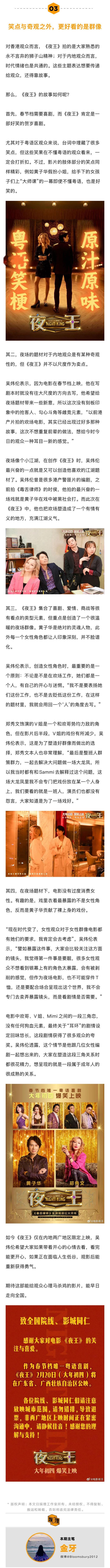 春节档需要夜王这样的喜剧夜王女性群像 电影《夜王》导演吴炜伦谈创作幕后,回忆在《毒舌律师》杀青宴上就表示拍《毒舌律师2》不如拍夜场题材。他还回忆了黄子华当时的话语:“他说八九十年代,当红的女演员大部分都演过欢场题材,演过夜场女郎的角色。他说完之后,所有女演员都很大反应,很想参与到这个题材…”春节档马上有戏 ↓
