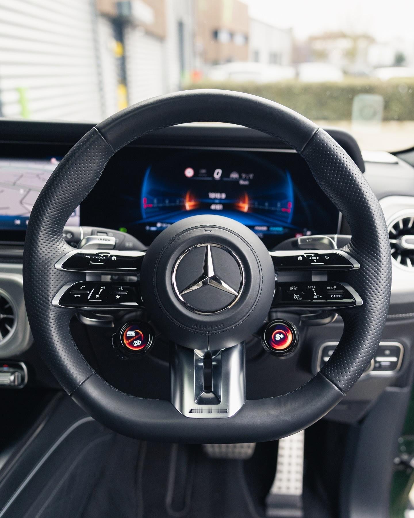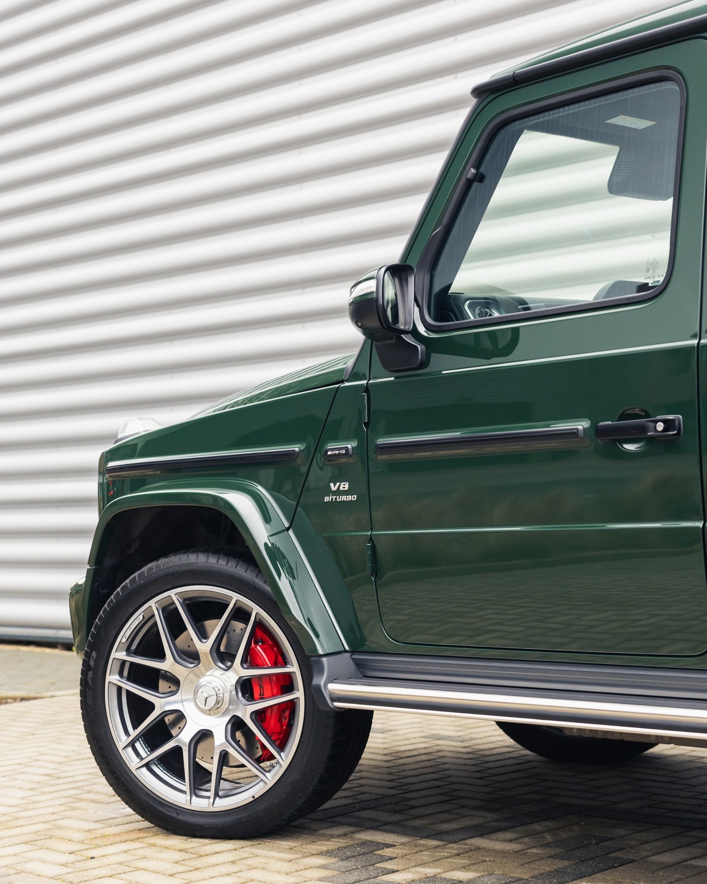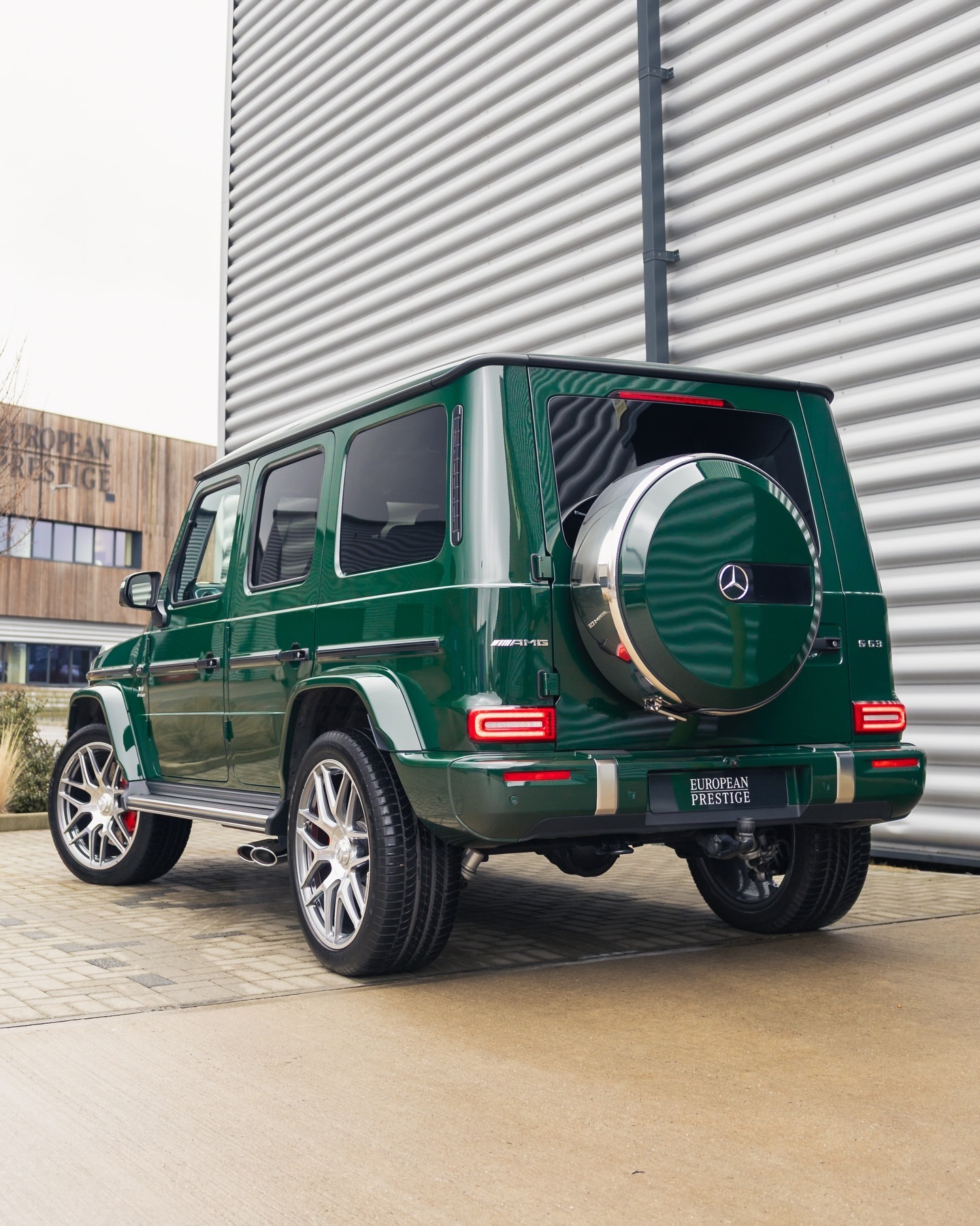 此车型的进一步规格包括:- 22英寸AMG十字造型锻造轮毂- 银色漆面轮毂- 红色漆面刹车卡钳- G Manufaktur深绿色外观漆面- 电动玻璃天窗- 不锈钢装饰保险杠装饰条- 不锈钢后轮罩装饰条- Burmester高端音响系统- 黑色Nappa皮革内饰- 独家线路内饰升级- 钢琴黑中心控制台装饰条- 前排加热和通风座椅- 后排加热座椅- 加热方向盘- 加热挡风玻璃- 温度控制杯架- 前排无线充电- 无钥匙进入- 360度摄像头- AMG赛道速度表- 车库门开启器- 盲点监测- 自动泊车辅助- 自适应巡航控制- 自动车道保持辅助- 路牌识别系统- Distronic Plus带交叉路口辅助- 防盗保护套装Plus- 停车套装- 车辆内饰舒适套装- 活动多轮廓座椅套装Plus