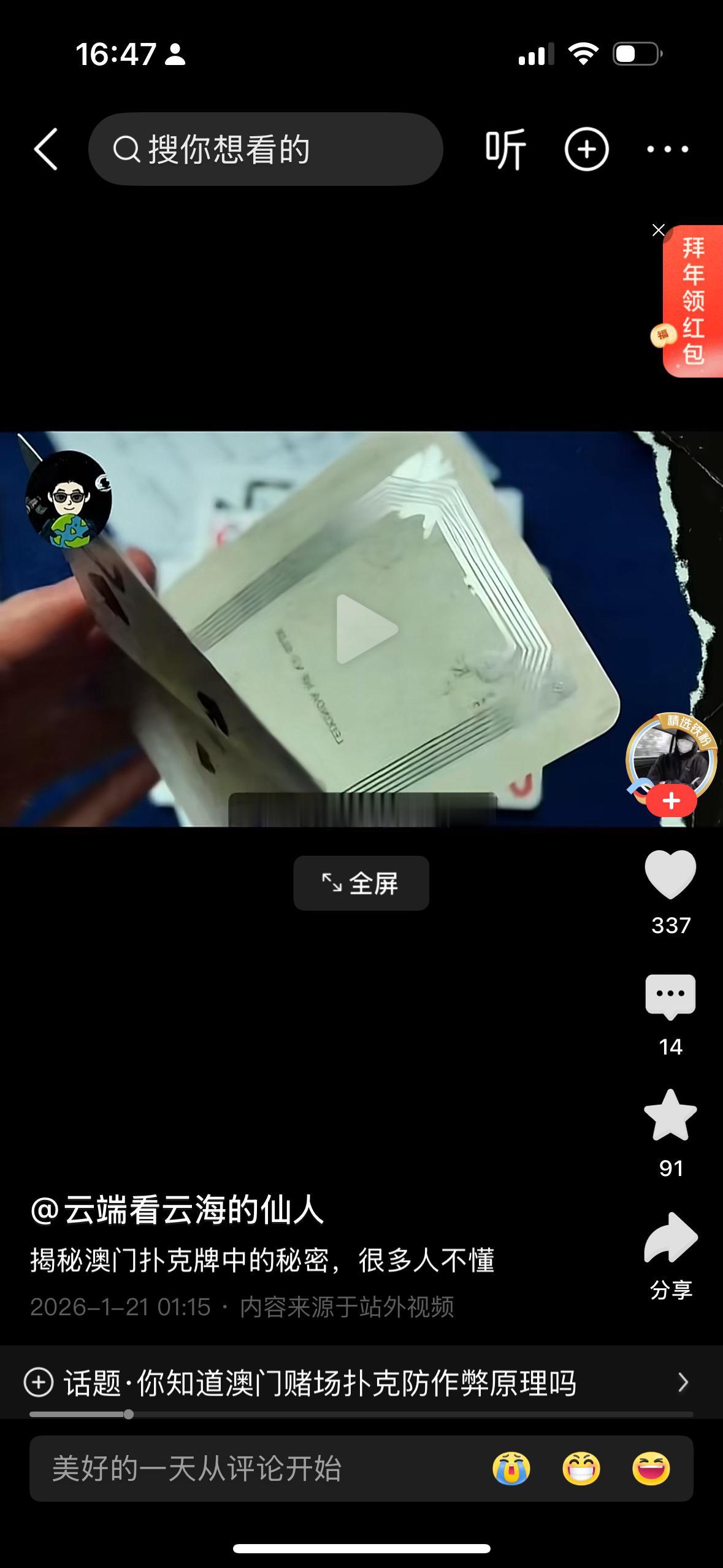 澳门赌场用的扑克牌是有芯片的,我觉得这就是赌场作弊的最主要的原因之一,因为有芯片他每副牌都可以控制点数,因为所有牌的秩序他都能够安排好,让你防不胜防,我去过澳门的赌场是与你的想法相反的,试过十盘牌一盘没有中过,按照数学的概率来讲,平均十盘牌应该中五盘吧,实际上你可能下了十盘牌,只有一盘牌能中,特别你下大的注碼的情况下基本上是输的….