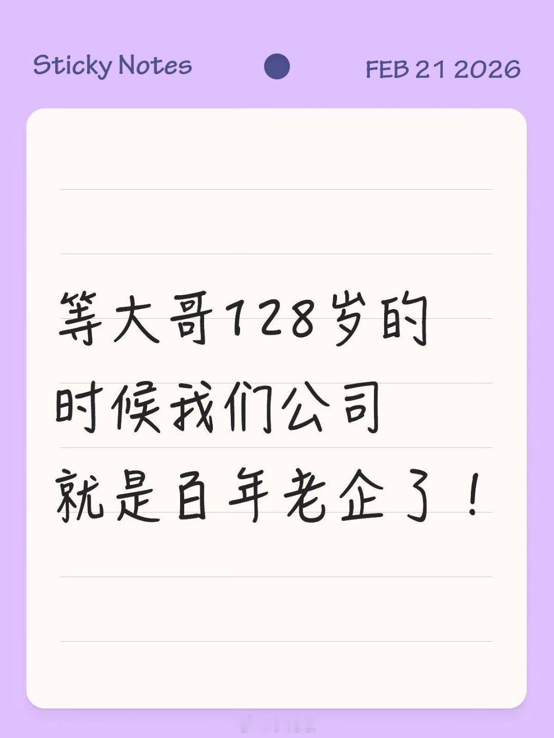 你们知豆不等大哥128岁的时候我们公司就是百年老企了!十个勤天做大做强