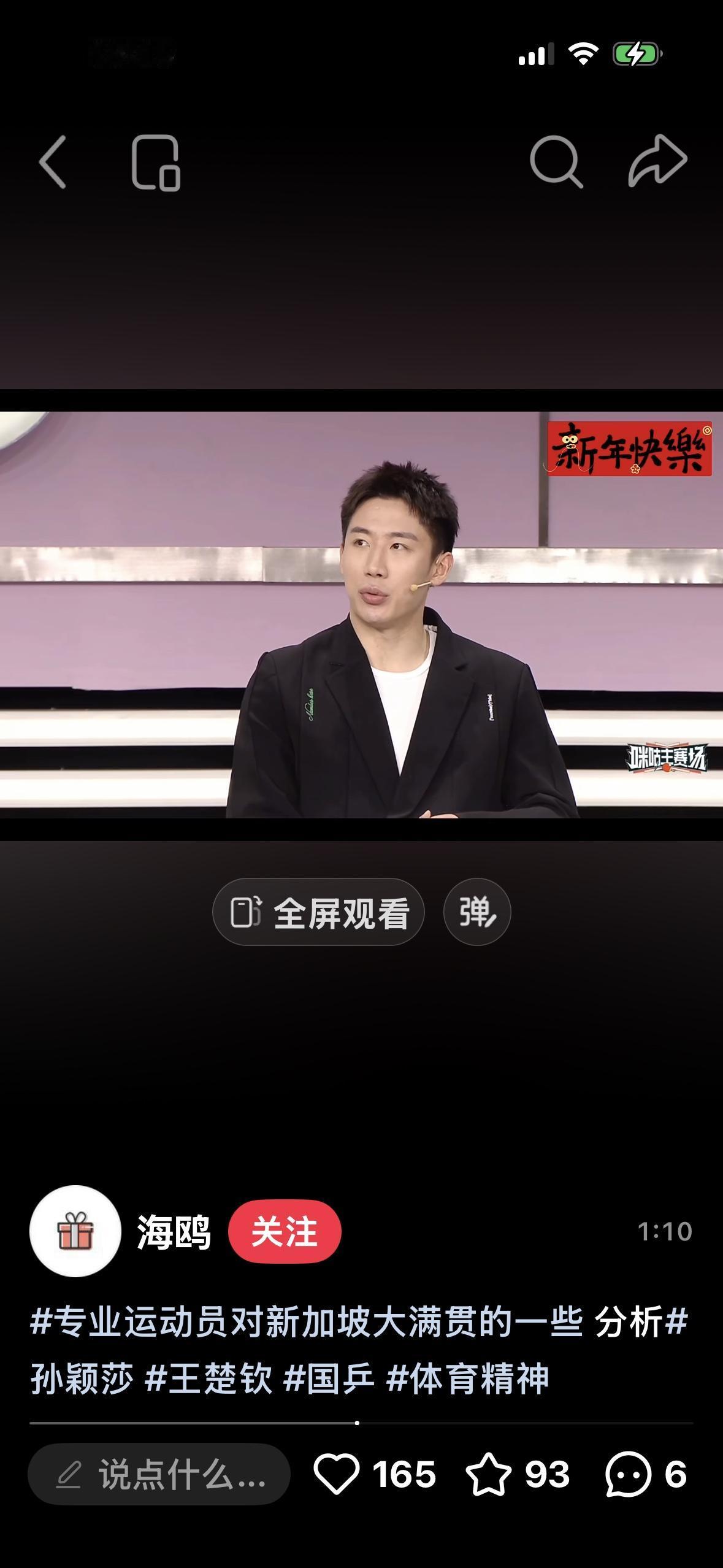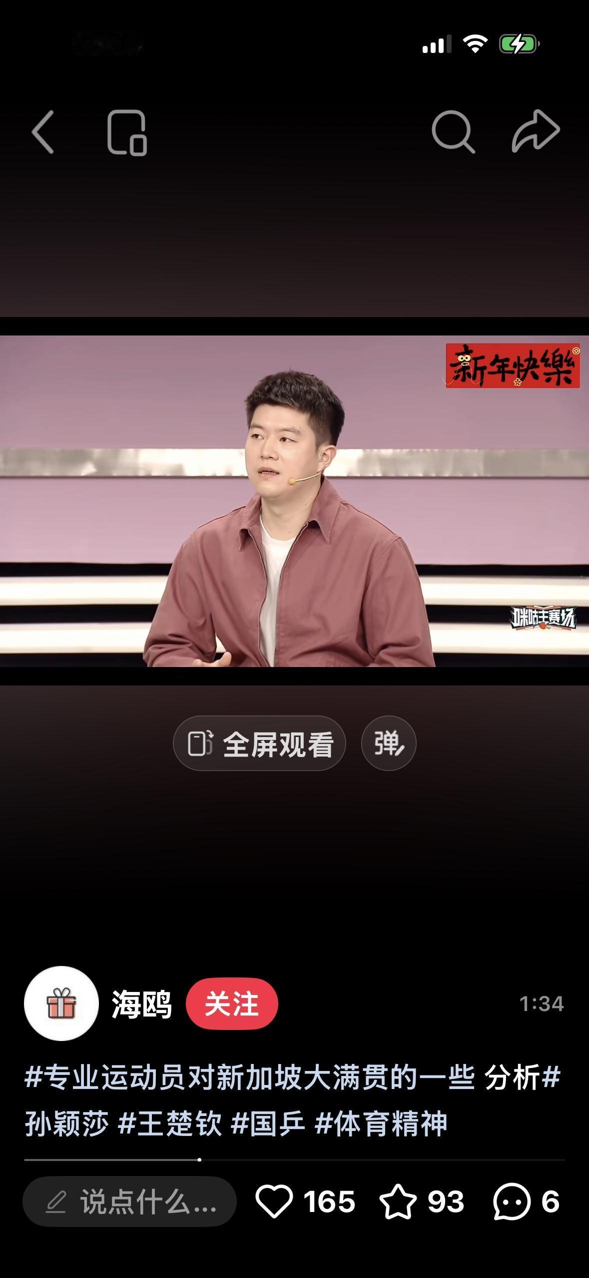 程靖琪对新加坡大满贯男单签位的分析:王楚钦打进决赛会师队友的希望不大! 2月21日,程靖琪在节目中与 小周老师分析了2026新加坡大满贯 男单的签位: “亚洲杯是王楚钦伤退后的 第一场比赛,表现完美, 而且四强中国乒就剩王楚钦一个人, 当时解说的时候, 都感受到了压力。 这就是现实情况, 即使北京大满贯的时候, 国乒队员都表现出色, 到处开花, 一直在赢球,都是捷报, 到最后还是面对外协, 所以王楚钦主要还是提高对自己的 要求,就是对自己的较量, 决赛会师队友的希望渺茫, 还是要自己承担压力……” 本身林诗栋与王楚钦都在上半区, 下半区队友冲到决赛的希望很小, 下半区有黄友政,陈俊菘, 陈垣宇, 只能期待奇迹出现, 都多少次比赛了, 决赛中只有王楚钦一个人, 压力很大, 队友会师决赛, 一直都是王楚钦梦寐以求的!