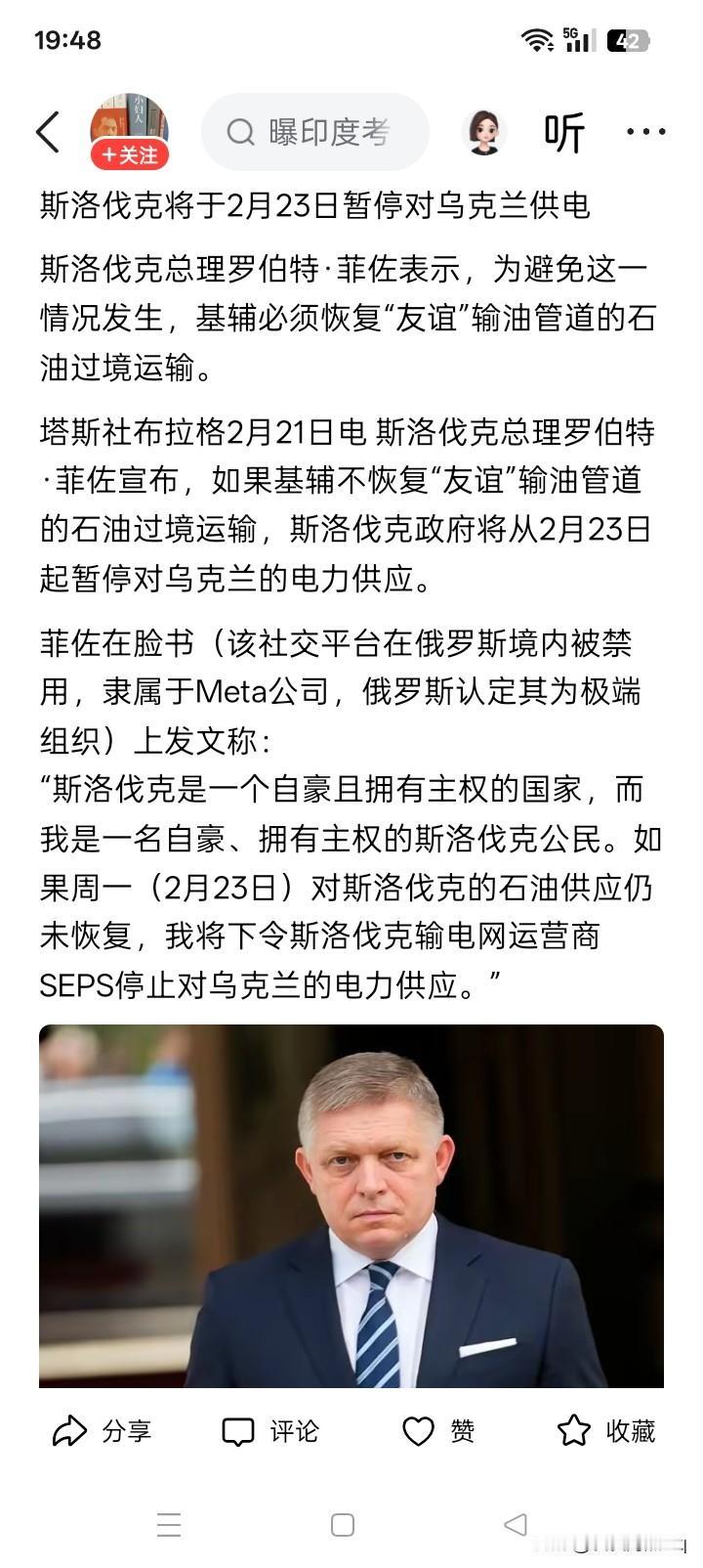 说了算数吗? 好像是去年的某个时候,斯洛伐克总理菲佐威胁乌克兰,将停止向乌克兰出口电力,但斯洛伐克电力公司SEPS随即表示,该公司将继续履行与乌克兰的电力供应合同,因为SEPS电力公司与乌克兰签署有卖买电力的协议。 现在,菲佐又表示,如果乌克兰不恢复“友谊石油管道”向斯洛伐克供应俄罗斯的石油,将下令SEPS电力公司停止向乌克兰提供电力。那么,菲佐这次说话算数吗? 再说,“友谊石油管道”停止向斯洛伐克供应石油,原因是俄罗斯在1月17日对乌克兰的空中袭击中,破坏了“友谊石油管道”,才造成了输油彻底的中断,这与乌克兰又有多大的关系呢? 但最关键的是,乌克兰怕不怕斯洛伐克停止供电,以及SEPS电力公司会不会服从总理菲佐的命令,而SEPS向乌克兰供电,似乎就是纯粹的商业事务上的买卖行为。