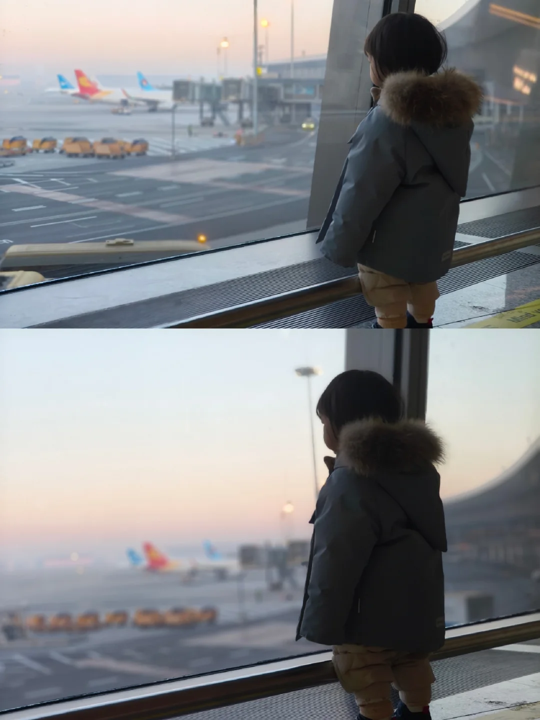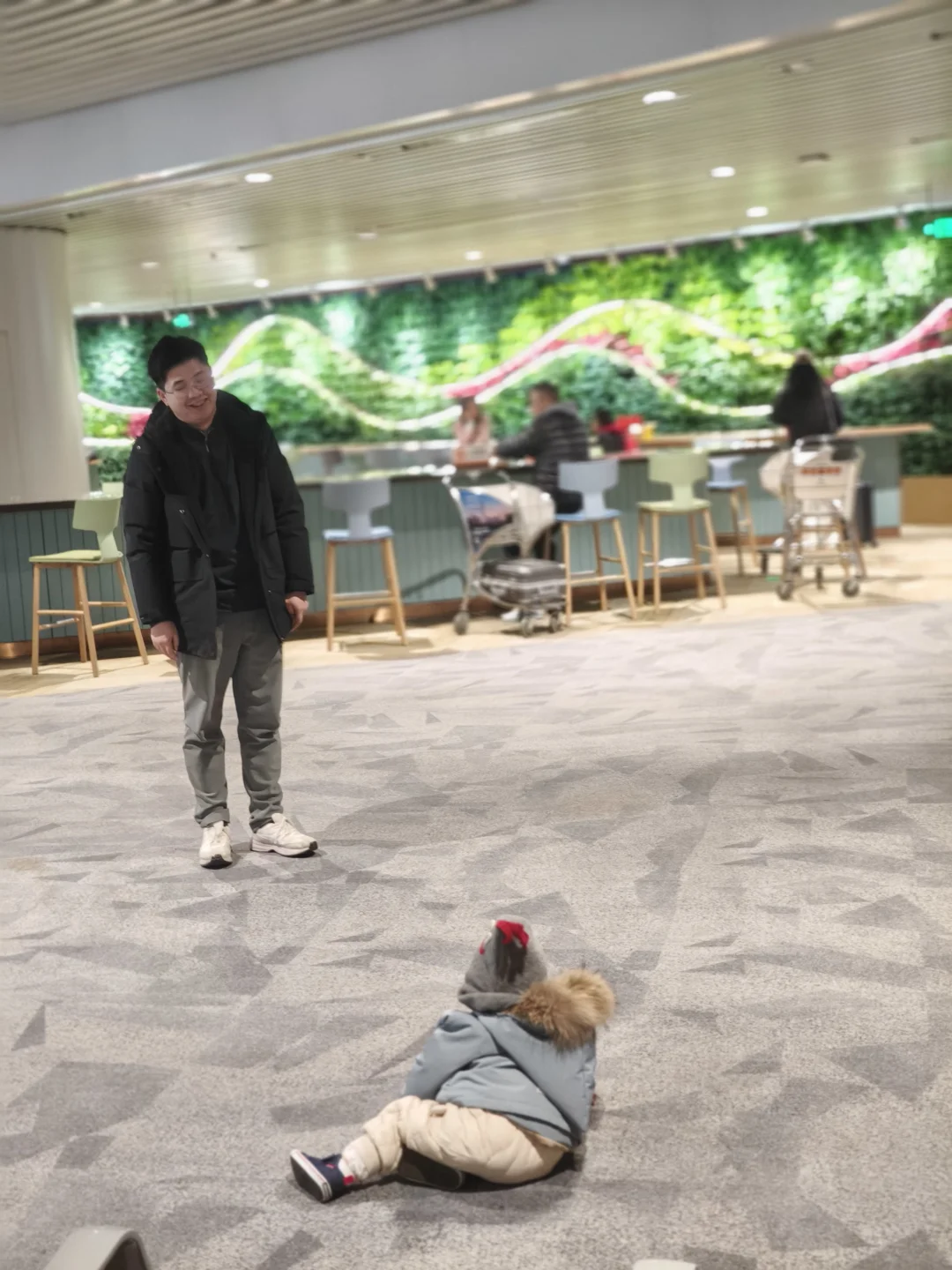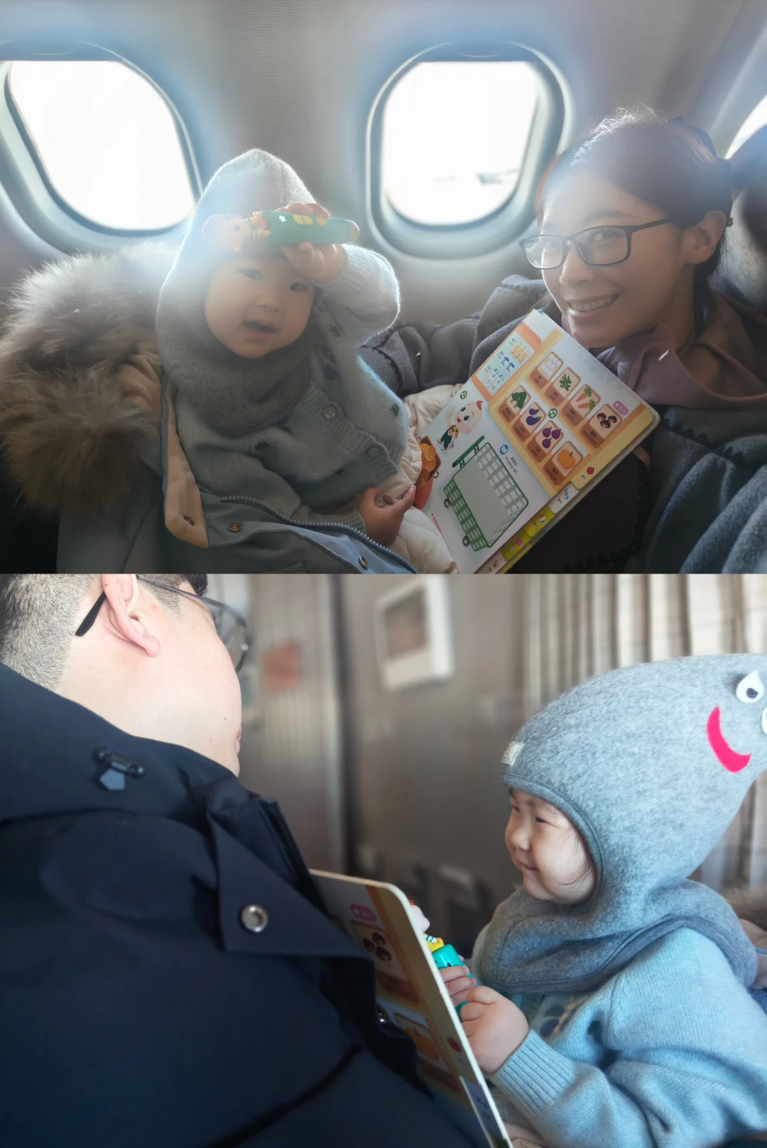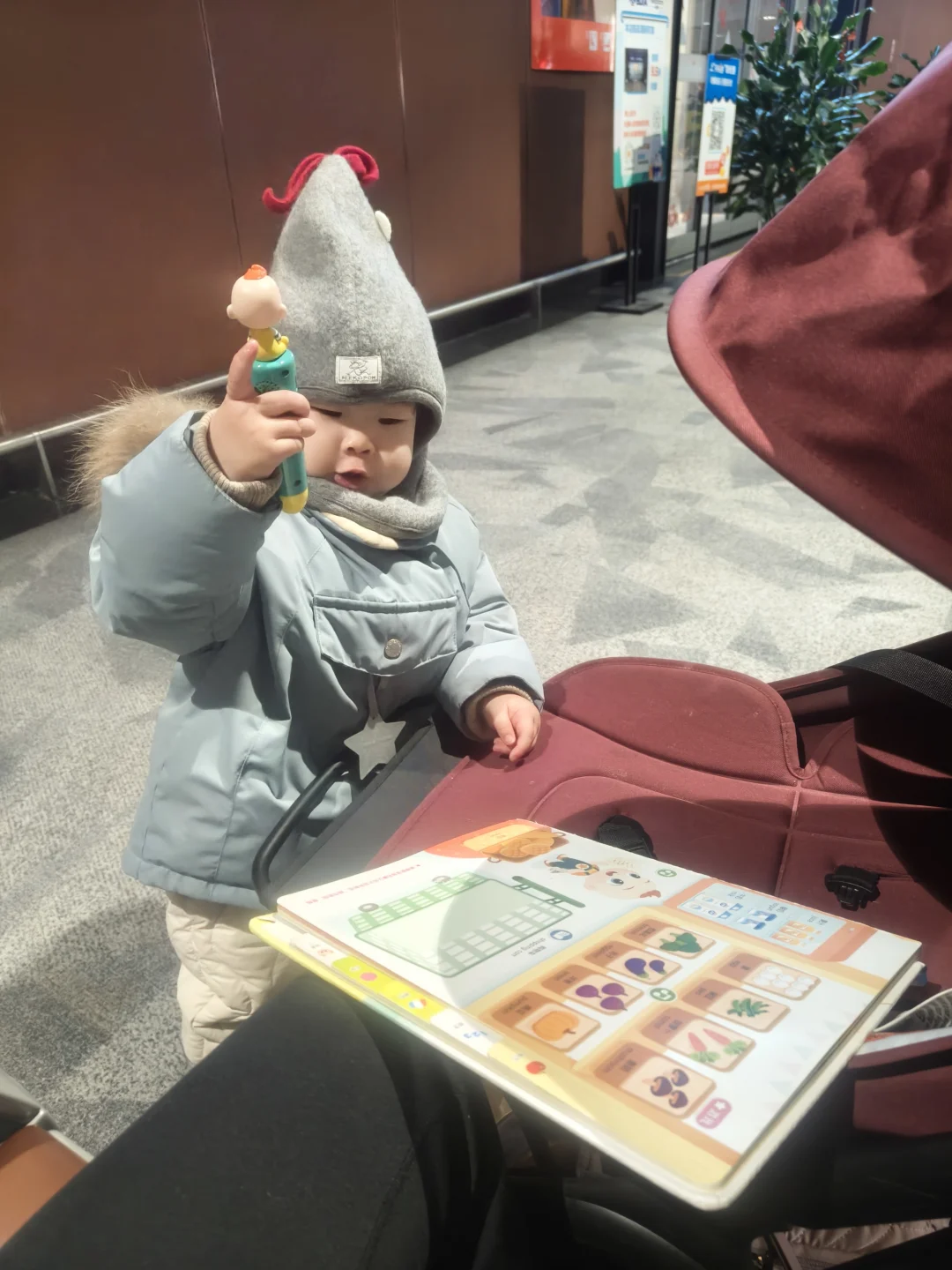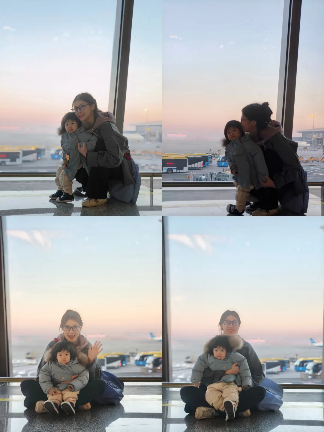 🐴年初一,她从被子里抱出来,闭着眼睛被穿好衣服鞋帽,赶早上的飞机✈️出去玩 睡了一路,到机场醒了,开始不要坐车,要下地自己走 踉踉跄跄路都走不稳的年纪,认识很多小动物,认识布布,兔兔,一路玩玩闹闹,等到七点多的时候,机场广播提醒可以看🌅,牵着她走到窗边,小孩姐认真的看着日初的霞光,不知道是愣神还是在思考🤔 不知道她在想什么,但情绪依然稳定,知道是和爸爸妈妈出来玩了,问她高不高兴,会说嗯!问她去玩行不行,会说行⭐ 一路依然带着最爱的JOJO上飞机了,不得不说,被撕掉页的JOJO带着可真方便啊哈哈 牛马父母一年到头能陪孩子几天? 答案就在这里吧,孩孩需要我们,我们更需要孩孩[红色心形R] 看照片又觉得头发又长了,等着过了十五找阿峰叔叔剪剪吧,阿峰叔叔也回家陪自己的孩孩了 [星R]本次出行小tips: 两岁以内宝宝登机口升超经不加钱,喜大普奔,喜欢能省钱的一切手段,选大型机超飞第一排宽敞到可以放下婴儿车(如图10-11),当然起飞要收起来,但起飞前的半小时够她睡一会了
