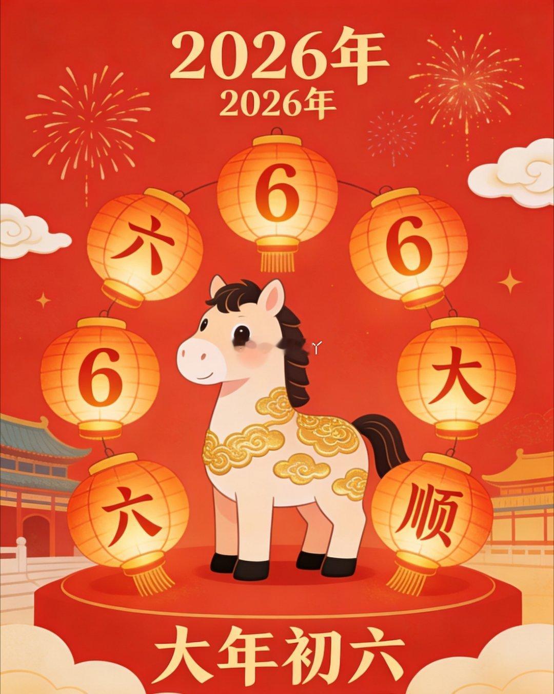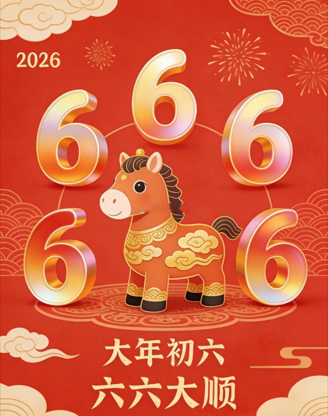 大年初六,送穷纳福!晨起扫去庭前尘秽,把旧岁的烦恼与晦气统统送走。开市锣鼓声声起,愿丙午马年,顺风顺水,六六大顺,日子红红火火,万事皆胜意!初六送穷,好运进门!扫掉垃圾扫掉烦,迎进财气迎进安。新的一年,愿所有的努力都有回报,身体康健无病痛,事事顺心,前路坦荡,马到成功!