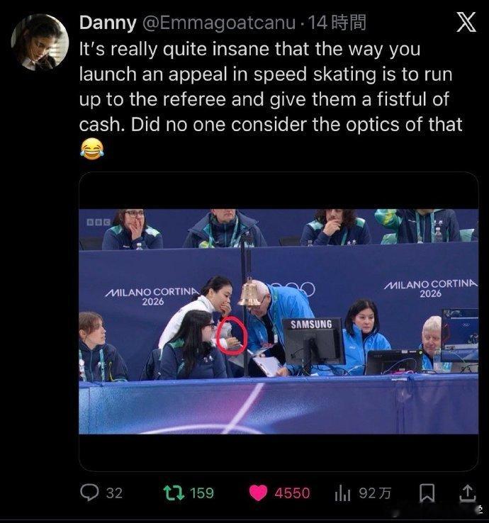 短道速滑申诉需要缴费吗米兰赛场,一张韩国教练手持钞票申诉的图片走红网络。国际滑联短道速滑主管、前奥运冠军雨果·亨霍夫澄清道:“本届冬奥会的申诉机制已大幅简化,教练员不再需要缴纳任何象征性费用。”