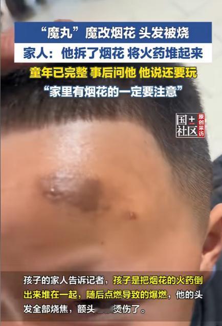 四川,一男孩趁家人不注意,把烟花里的火药全倒出来堆在一起,点燃后瞬间发生爆炸,之后,男孩头发全烧焦,额头也被烫伤,离谱的是,家长问他以后还玩不玩时,男孩竟然说还想玩 2月8日,于四川宜宾,一个男孩静蹲在自家院落的角落,手中紧攥着打火机,目光凝在身前那一小堆黑色粉末上,气氛似有几分静谧而又暗藏未知。 在他眼里,那不过是能变出绚烂光影的魔法材料。于物理世界中,有那么一颗定时炸弹,正静静地蛰伏着,宛如一位沉默的杀手,随时等待着被触发,而后爆发出毁灭的力量。 打火机凑近的瞬间,没有任何缓冲,火焰直接窜起,气浪扑面而来。男孩呆立原地,发丝因灼烧而蜷曲焦脆,额头尽是焦黑之色,脸庞之上,亦满是火药的尘灰,模样凄惨至极。 旁边玩耍的小朋友被吓哭了,屋里的大人慌忙冲出来。 事情的起因,说起来荒诞又心惊。 此子乃家中独子,集万千宠爱于一身。长辈对其宠溺过度,毫无分寸,真可谓娇惯至极。寒假回老家过年,跟爷爷要了钱,自己跑去商店买烟花。放着放着,脑子里冒出个念头:一小支烟花能喷出那么大一团火光,要是把好几支的火药倒在一起点燃,场面得多壮观? 于是趁着大人在厨房忙年饭、客厅里亲戚聊天,他躲到角落,一点点拆开烟花外壳,把黑色火药全倒出来,还用小棍捣实。 孩子的世界里只有"新奇"和"好玩",没有"浓度"和"燃点"这些概念。 他不知道,分散在烟花筒里的火药是温顺的,集中堆在一起就成了暴躁的炸弹。燃烧速度呈几何级数增长,火焰温度急剧飙升至七八百摄氏度。如此高温,能在瞬间烧焦毛发,轻易灼穿皮肤,威力着实惊人。 好奇心和物理定律撞在一起,结局从来不会温柔。 家人将孩子送至诊所,进行了清创与消毒处理。医生再三叮嘱,务必做好防感染工作,切不可掉以轻心,确保孩子能尽快恢复康健。处理完伤口,大人试着跟他讲道理,想让他记住教训。 "以后还玩不玩?" 男孩想了想,咧嘴一笑:"好玩,还要玩!" 这一回答,宛如一记重锤,狠狠击中家长的情绪,令其气愤不已,怒不可遏,整个人都被气得几近抓狂。头发都烧没了,额头还挂着伤,按理说该"一朝被蛇咬"了吧?偏不。刺激带来的兴奋感,压过了疼痛带来的恐惧。 孩子姑姑后来说了句话,听着像调侃,细品全是无奈:"孩子的童年已完整。" 什么叫完整?据说孩子父亲"让他过了一个难忘的年"。懂的都懂。 有网友在评论区现身说法:小时候把鞭炮扔进旱厕,炸了路人一身,我爸也让我过了个完整的年。自彼时起,内心便有了忌惮。此后,再不敢有将物品掷于厕所之举,那一时的冲动,已化作长久的警醒。 这事听着像段子,但春节期间类似的意外真不少。 多地医院除夕前后接诊了大量烟花伤童病例。有孩童竟将加特林烟花朝向自身燃放,瞬间,强烈的烟火侵袭,致使其手掌与前臂遭受严重灼伤,这危险一幕令人揪心。有孩童把烟花抛向杂物堆,刹那间,火星点燃易燃物,火势迅猛蔓延。一场小区火灾由此引发,这警示我们,安全隐患切不可等闲视之。仍有稚子拾起哑炮拆解嬉玩,却不知残留火药暗藏祸端。刹那间威力骤发,那稚嫩手指被无情炸伤,如此惨状,着实令人痛心疾首。 起因大同小异:孩子不懂危险,大人一时疏忽。 春节的热闹,恰恰制造了监护的真空。厨房里炖着肉,客厅里打着牌,院子里的孩子在干什么,没人盯着。等到砰的一声响,冲出去已经晚了。 事后家长都后悔:早知道就盯紧点,早知道就把危险讲透。 可"早知道"三个字,从来都是事后才冒出来的。 烟花是年味的符号,但符号背后是真实的火药。孩子怀有好奇心,本是与生俱来的天性。然而,这如脱缰野马般的天性,亦需划定边界。唯有如此,方能让好奇心成为孩子成长路上的助力而非阻力。 当那堆黑色粉末爆燃刹那,它实则在警示各位家长:团圆需以平安为基。纵是年味醇厚,亦不及安全这条底线厚重。 至于那个说"还想玩"的男孩,希望他额头上的伤疤,能比父亲给的"完整童年"记得更久一点。 信源:国+社区2026-02-10——《2月8日,四川宜宾。“魔丸”改装烟花,点燃火药堆后头发被烧。姑姑:孩子的童年已完整。家里有烟花的一定要注意。》