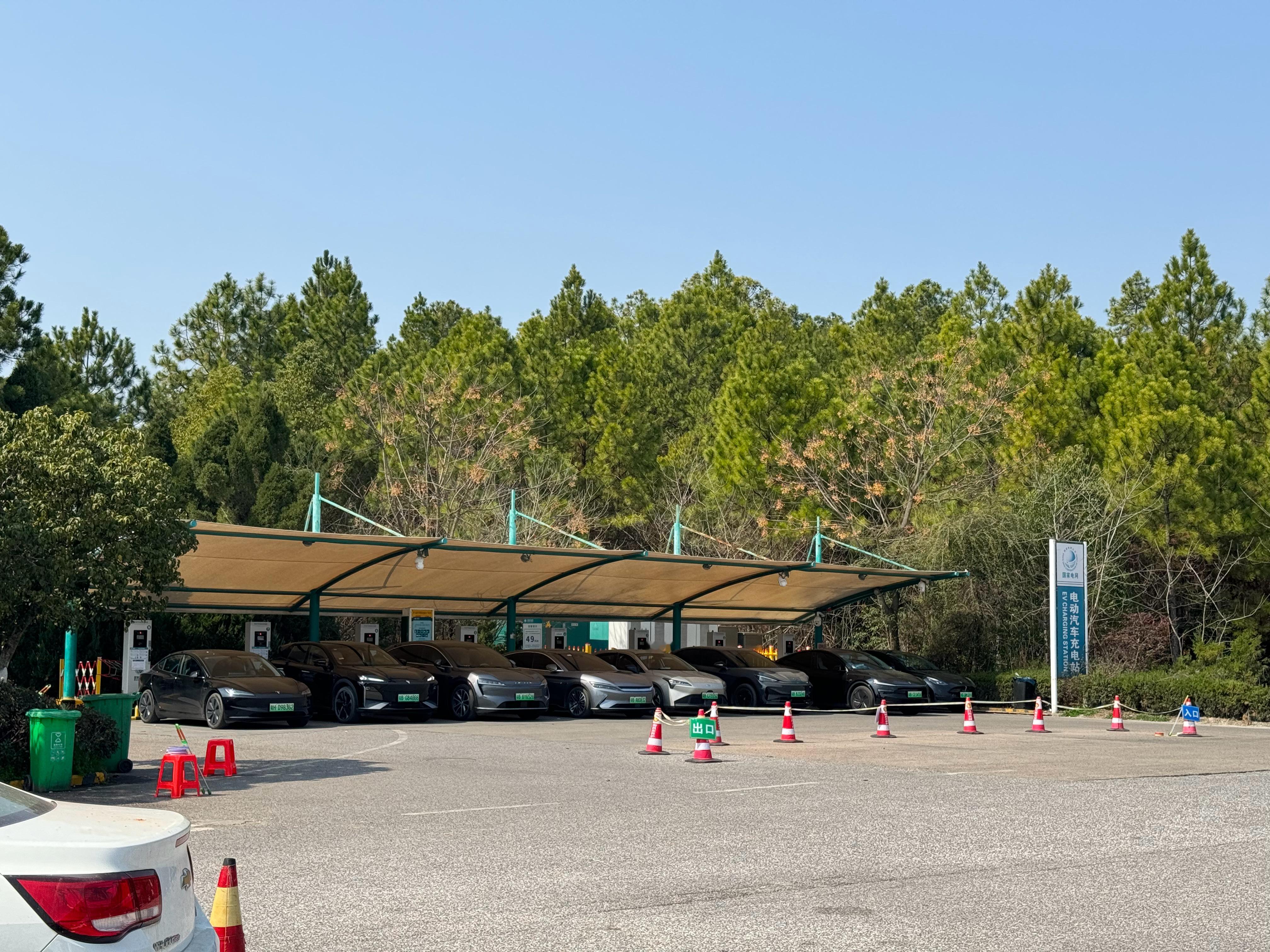 经过江西余江服务区,左手边是国家电网的充电站,右手边是理想超充站。