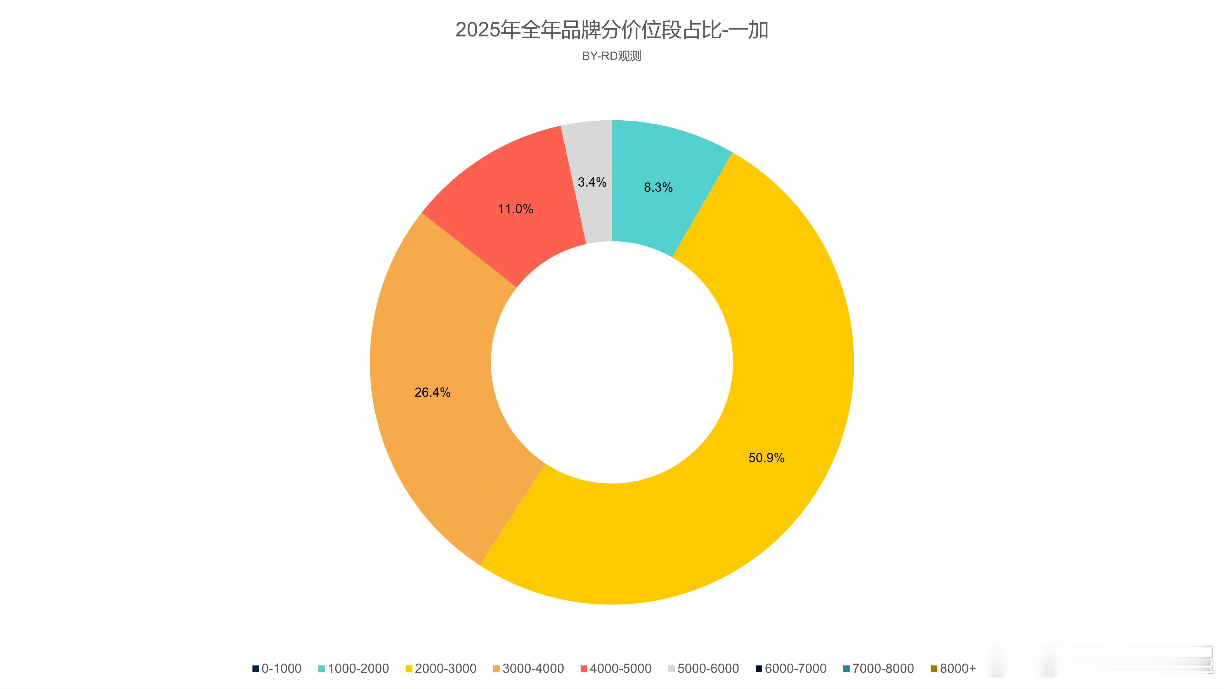 一加和iQOO的价位段占比图,一加2K以下占比8.3%,iQOO是43.5%,虽然红米应该不会单独出占比图,一加的均价应该是子系中最高的了