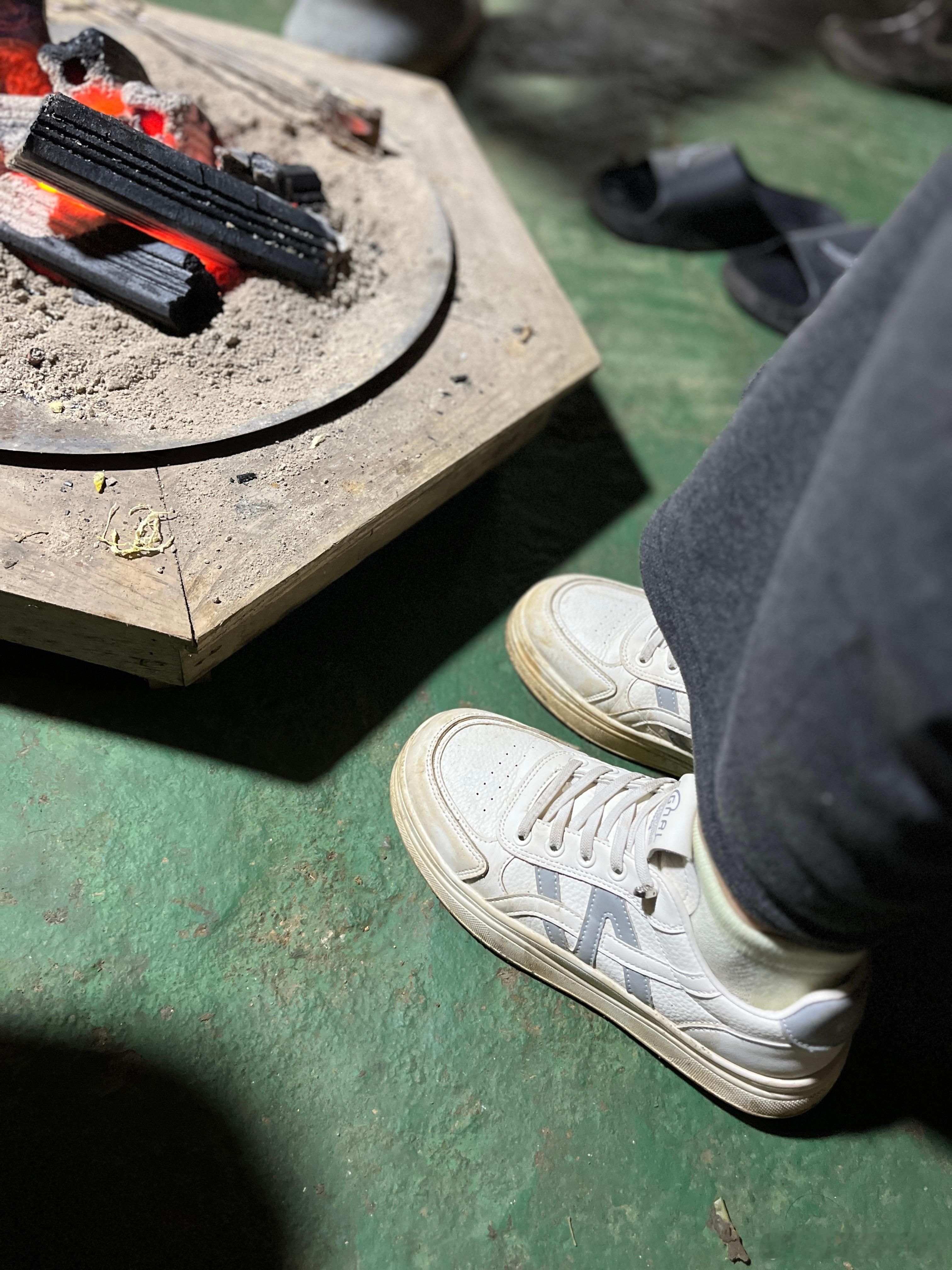 我在烤火,柠宝不让我烤,怕烧到我手