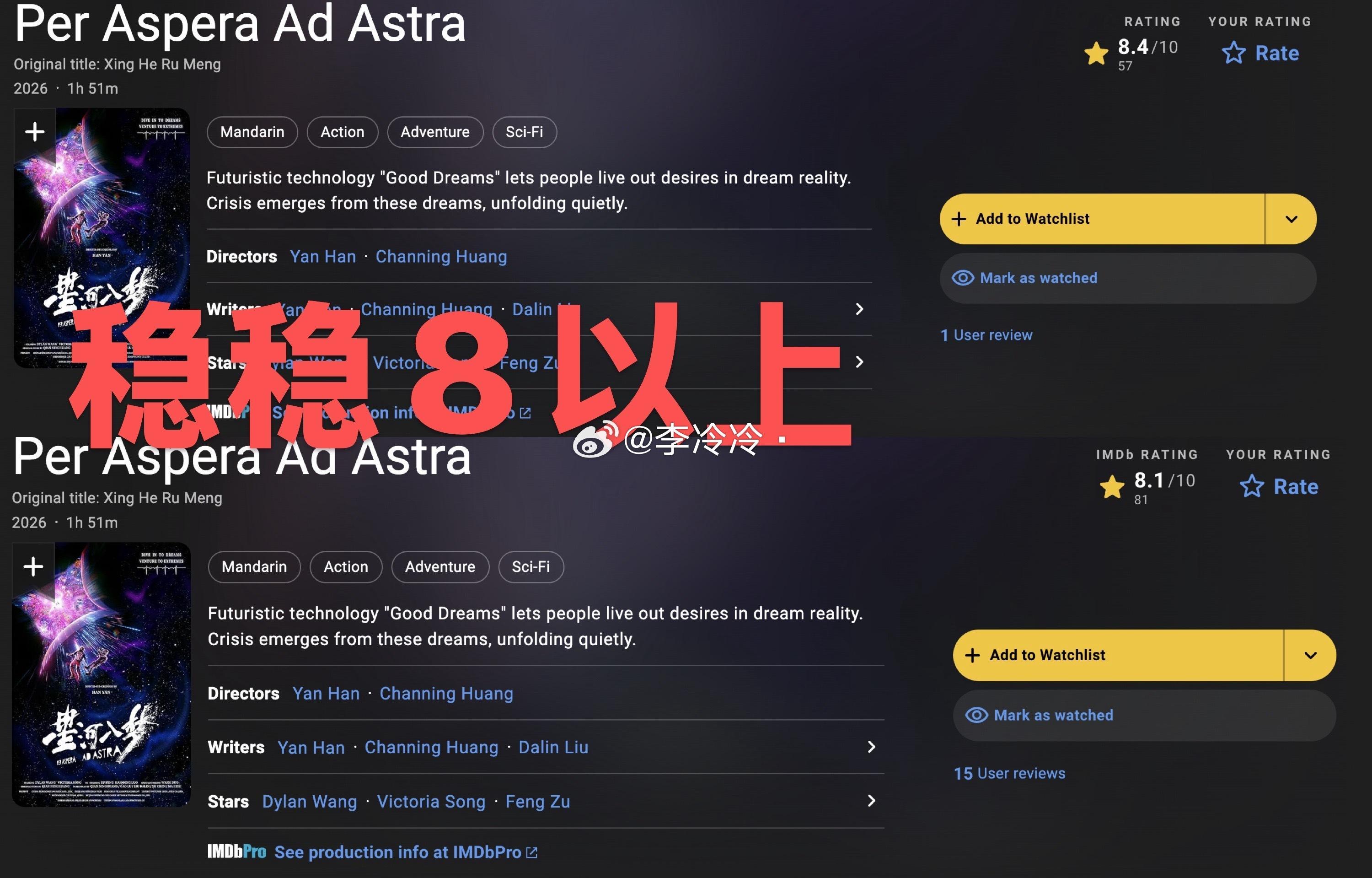 星河入梦imdb评分8.4《星河入梦》开分 8.4,分数会随着打分人数上涨有所变化,现在稳定在8.1,想说这个小星河的实力太👍,特效够顶,场面够大,舱内甚至都是手搓,就这个精细程度牛!!必须二刷走起!
