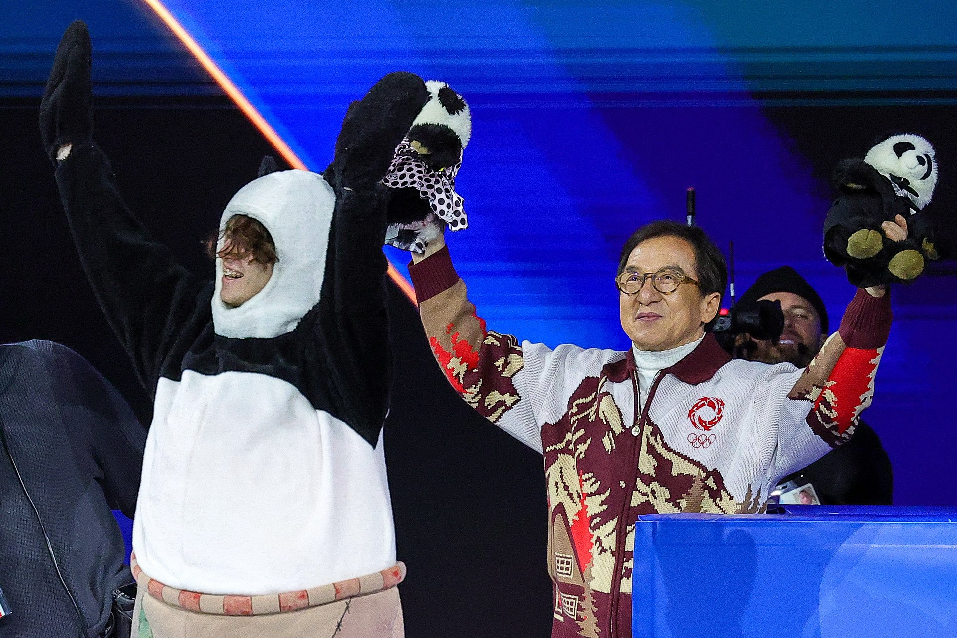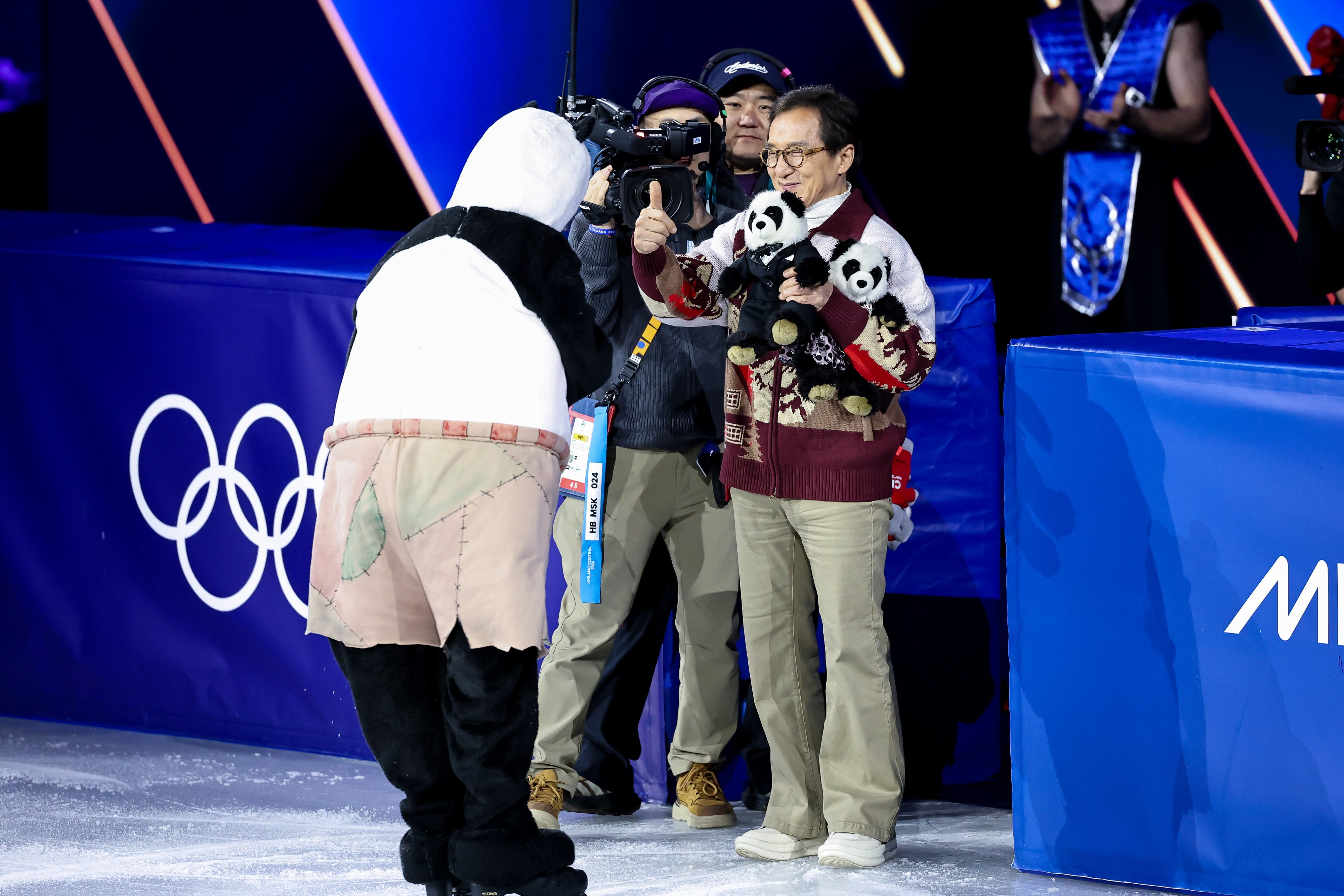 冬奥会米兰冬奥花滑表演滑 米兰冬奥会花样滑冰表演滑,花滑男单金牌得主萨多洛夫化身灵活的功夫熊猫,与成龙大哥互动~