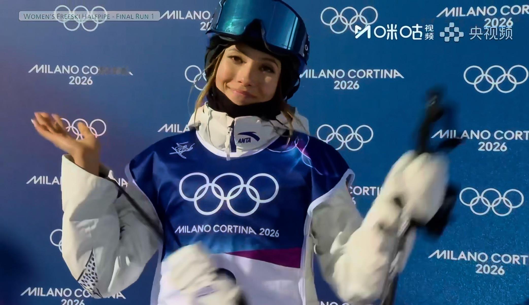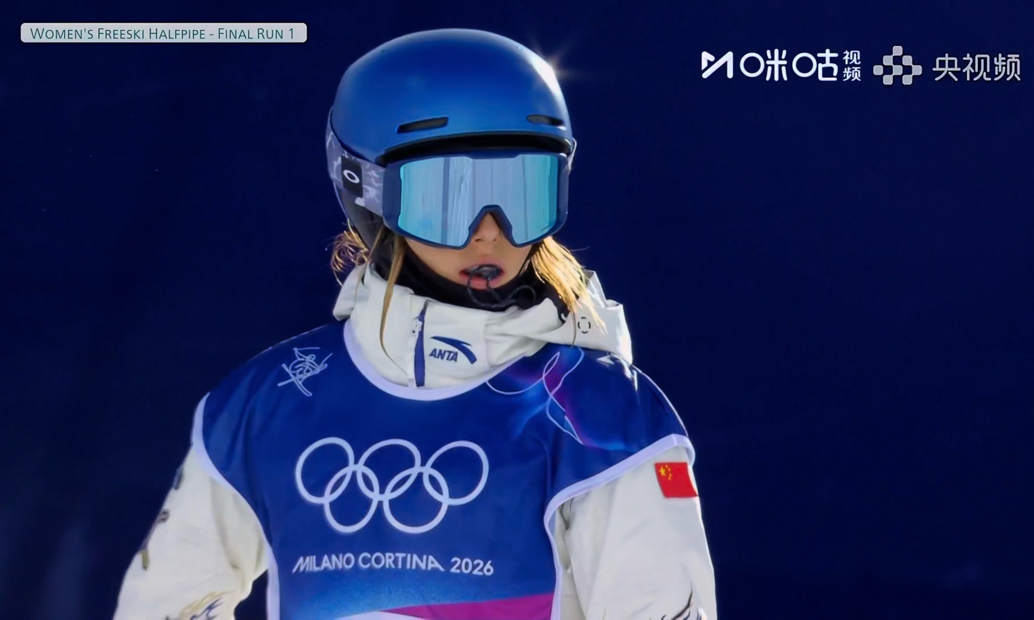 米兰冬奥会自由式滑雪女子坡面障碍技巧预赛,中国选手谷爱凌第二个出场,但她出现失误