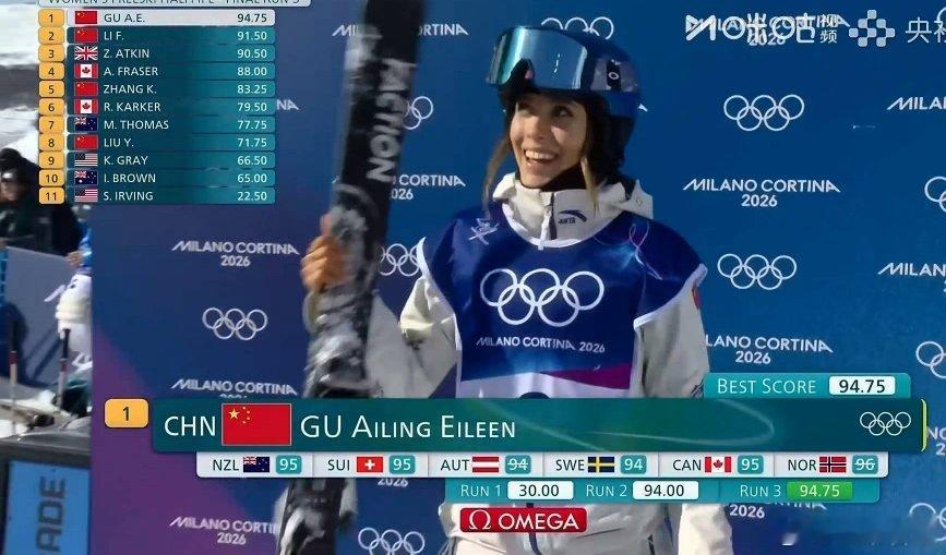 女子U型场地决赛94.75分稳稳第一!谷爱凌太牛了,她真的会飞!中国队第五枚金牌来了!