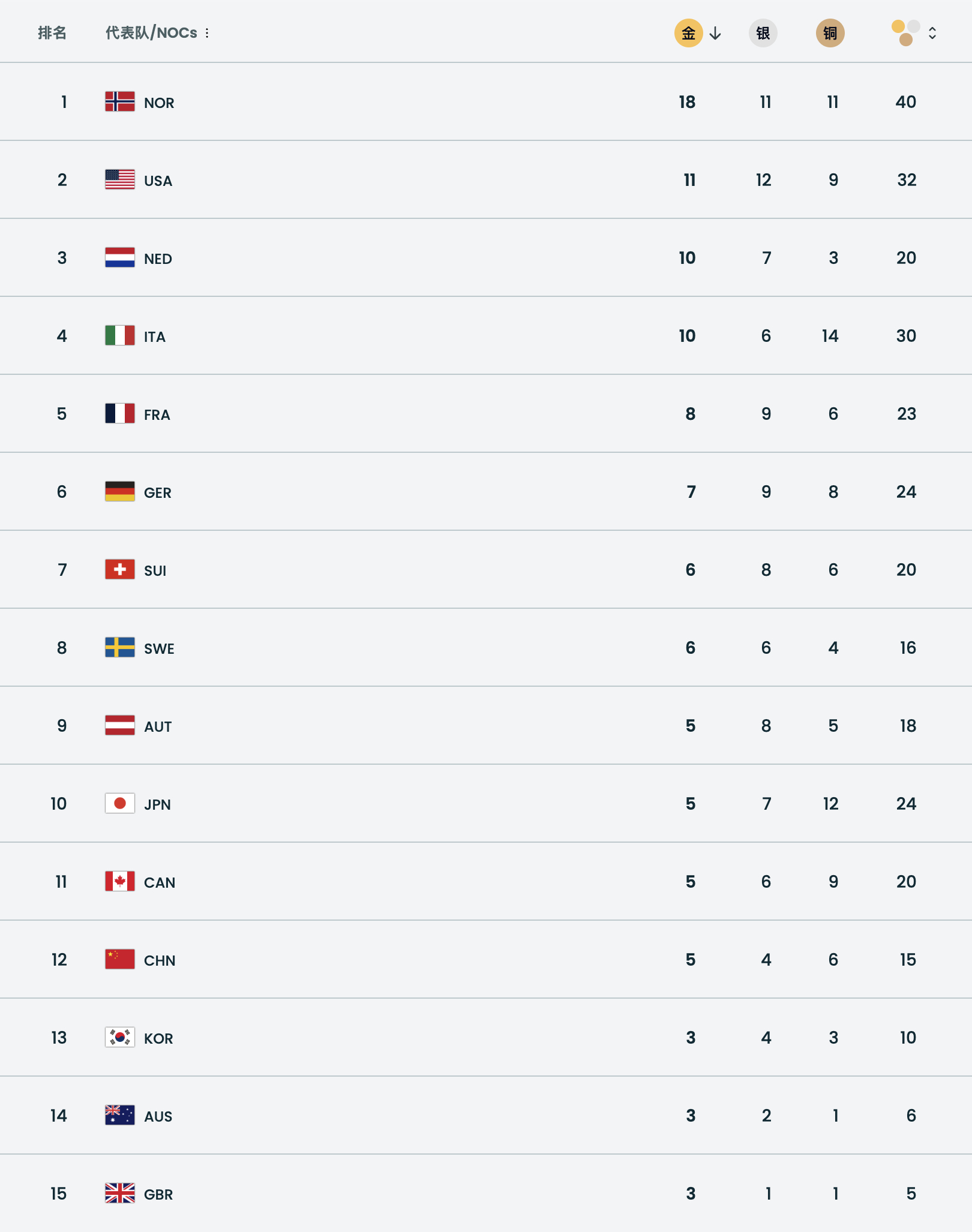 中国队5金4银6铜中国队追平冬奥奖牌最好成绩 谷爱凌金牌!目前中国队夺得5金4银6铜,15枚奖牌追平了上届北京冬奥会创造的中国代表团冬奥奖牌纪录。 谷爱凌金牌