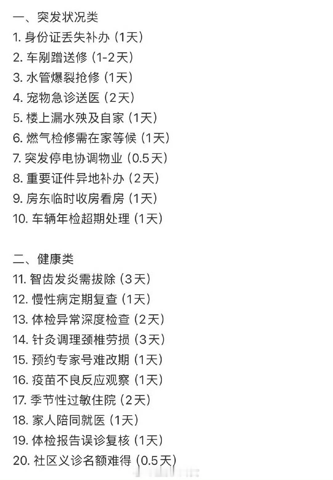 请假理由大全,速速码住
