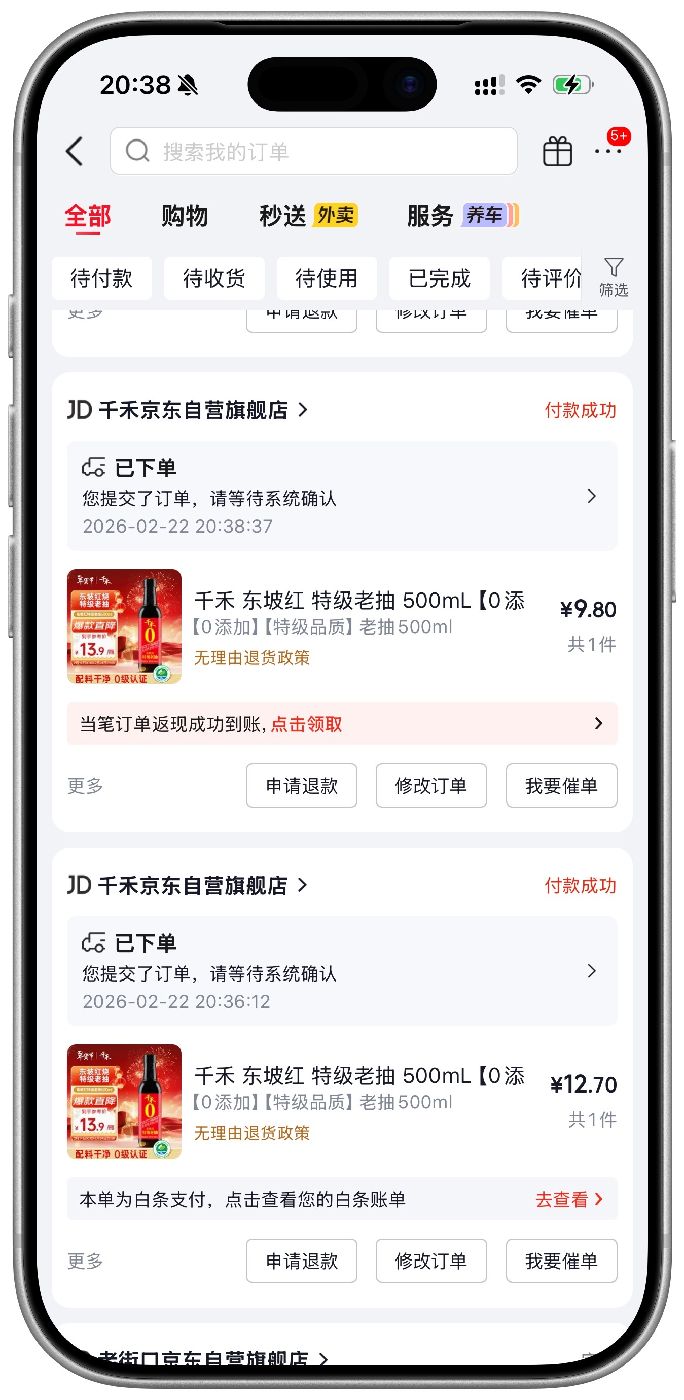 然后顺手买一件里,刚才下单一模一样的老抽,同一个店铺卖9.8元,果断买了,把刚才那一单退了。