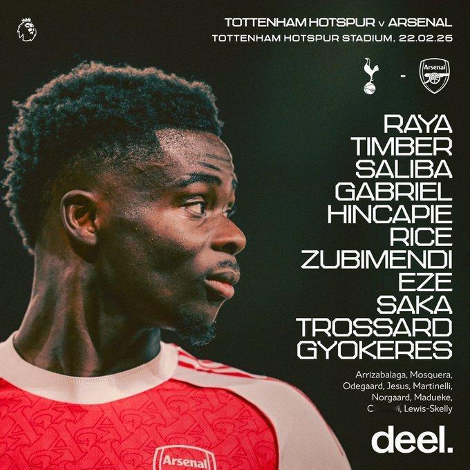 阿森纳首发来了!埃泽首发!