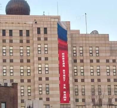 “胜利将属于我们”——长约15米,一幅写有胜利标语的巨型俄罗斯国旗条幅悬挂在俄罗斯驻韩国首尔大使馆大楼上。 据悉,当地时间21日,在俄乌战争四周年纪念日的前夕,在韩国首尔中区贞洞的俄罗斯大使馆大楼上,挂出了一面写着“Победа будет за нами”(胜利将属于我们)的俄文横幅。该条幅背景为俄罗斯国旗背景。对此,韩国政府要求俄方撤下该横幅,但据证实,俄罗斯方面予以拒绝。 据媒体报道,首尔外交界越来越强烈地批评称:在另一个国家的首都竖立宣示侵略战争胜利的标语,严重违反了外交公约。包括欧洲国家代表在内的驻韩国外交官已向韩国外交部表达了对该标语的担忧。 对此,韩国政府警告称,该大使的横幅和言论“明显过激”。韩国外交部最近表示:俄罗斯违反了联合国宪章,不能允许其在大使馆墙上公开展示对非法战争的立场。 韩国外交部指出,在大使馆大楼上刊登此类标语可能会激怒韩国公众,进而损害韩俄关系。鉴于乌克兰大使馆也位于首尔,人们担心这会引发不必要的外交紧张局势。 韩国外交部要求俄方拆除该横幅,俄罗斯大使馆予以拒绝。但根据规定外交使团不可侵犯的《维也纳公约》,韩国政府无法强行拆除该横幅。