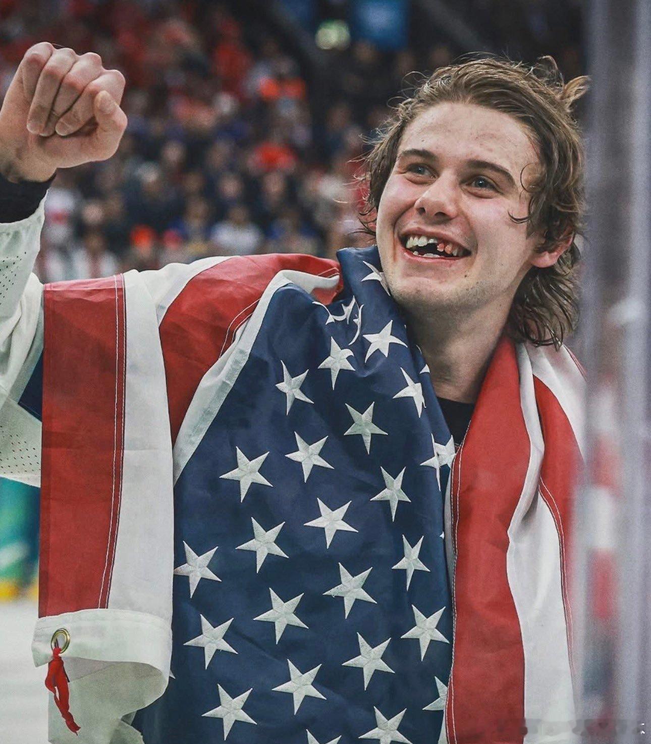 【黄金时代】24岁的杰克·休斯在为美国队打入制胜球后庆祝。冰球是勇敢者的运动。川