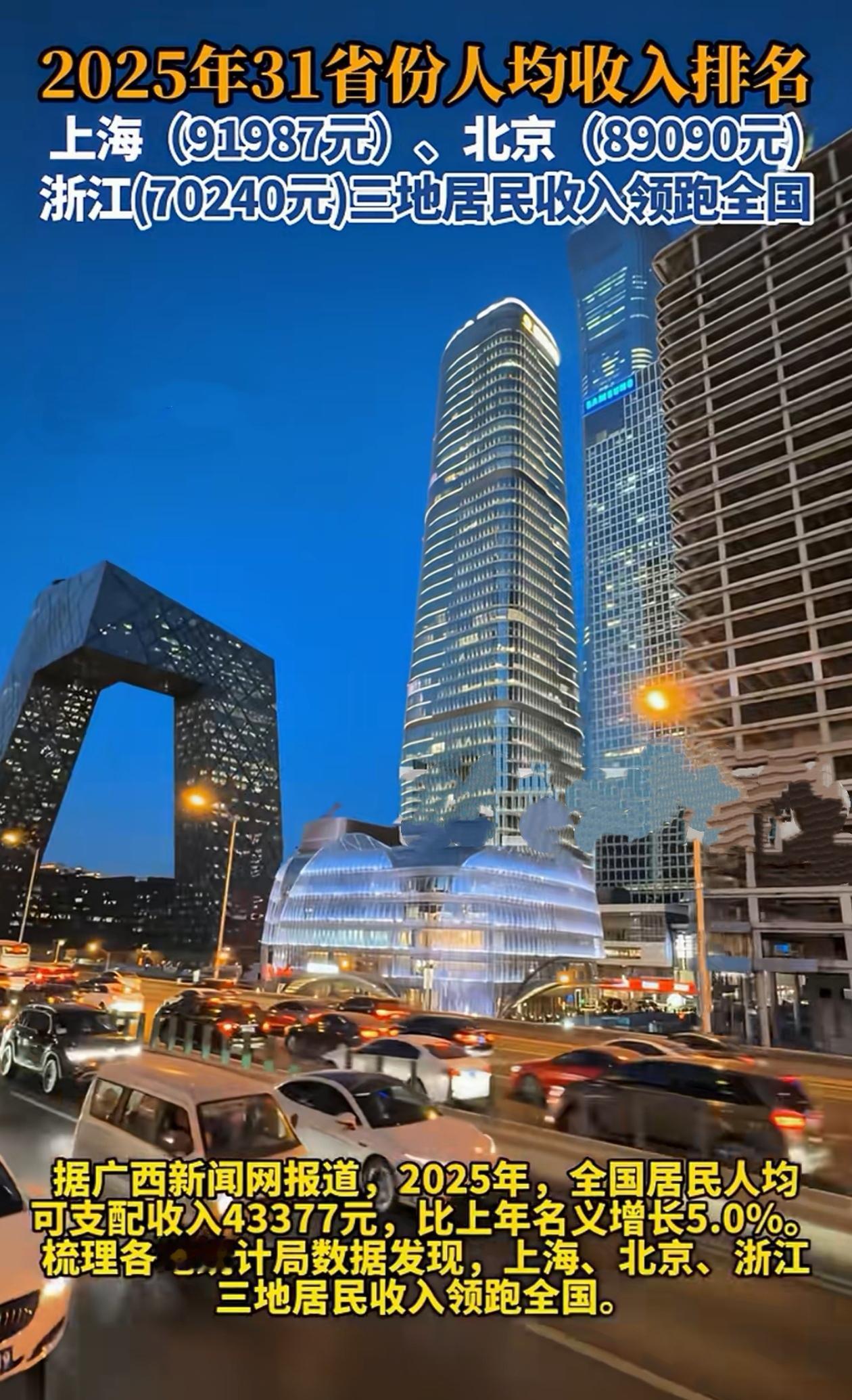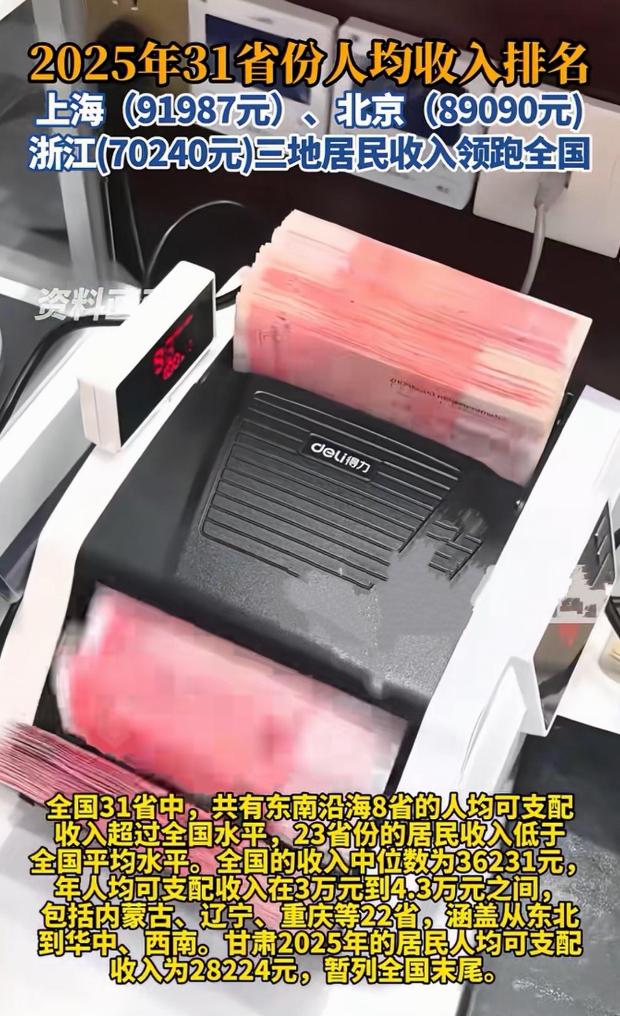 2025人均收入排名出炉!沪京浙断层领跑 上海首破9万