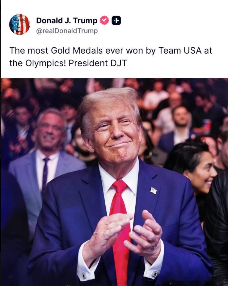 “美国队在冬奥会上赢得的金牌数量创历史新高!特朗普总统!”