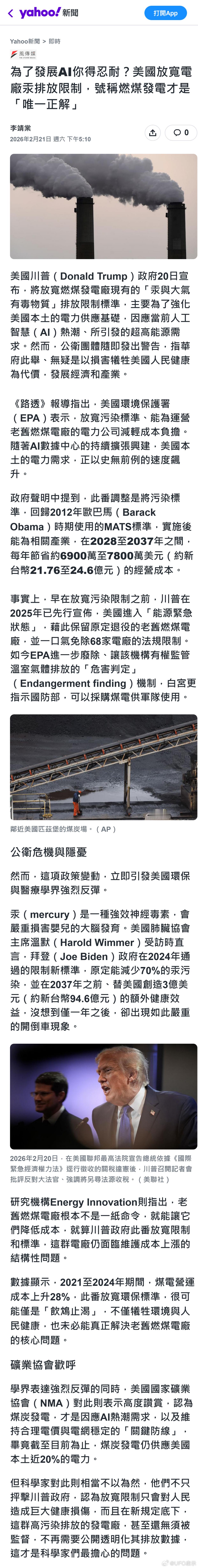 为了发展AI你得忍耐?美国放宽电厂汞排放限制,号称燃煤发电才是「唯一正解」