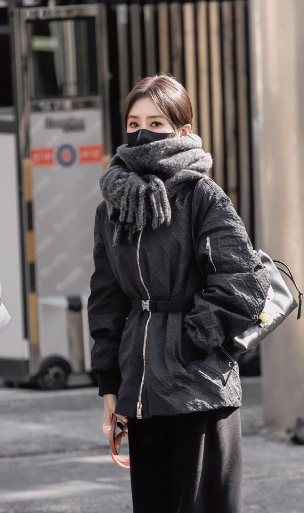 她上身穿几何风外套下身穿黑色裙子 气质超好,越变越有魅力了。 秦岚腰间扎着黑色的腰带,还凸显出了完美的身材比例,真的是太有大牌明星范儿了。 她脖子上围着灰色的围巾,增添了浪漫感,也显得超有格调,确实是非常的有吸引力。 她这次特意把头发挽了起来,还背着黑色的包包,整个人显得十分高贵。不得不说秦岚很会穿衣服