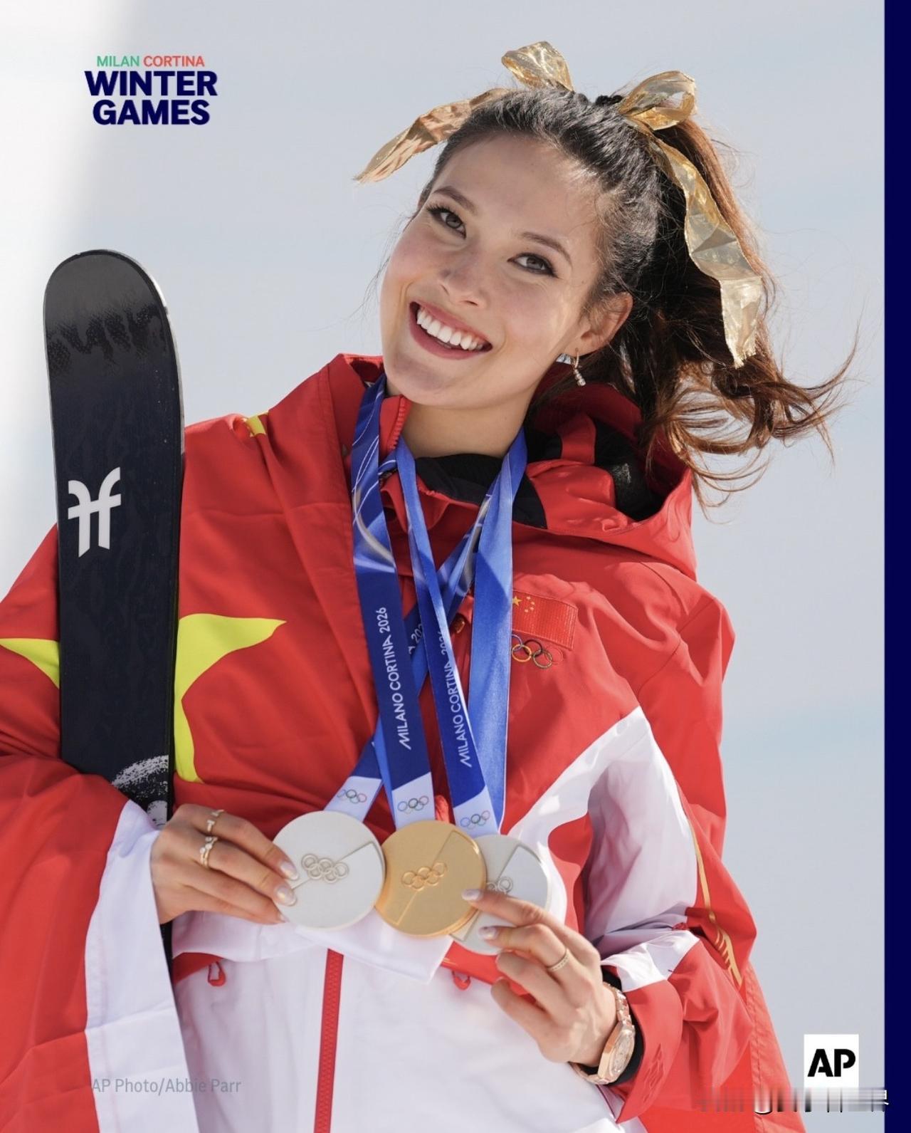 谷爱凌在自己的冬奥会生涯中,六个项目中获得六个奖牌! Eileen Gu defended her Olympic ski halfpipe title on Sunday to make it six medals in six events over her Winter Games career. "She is 'Wonder Woman,'" New Zealand's Mischa Thomas said.