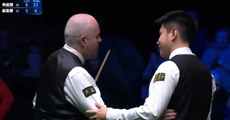 第14局,赵心童拿到20分后又出现简单球失误,好在之后希金斯也出现了几杆失误,赵心童超分获胜,7-7扳平比分。