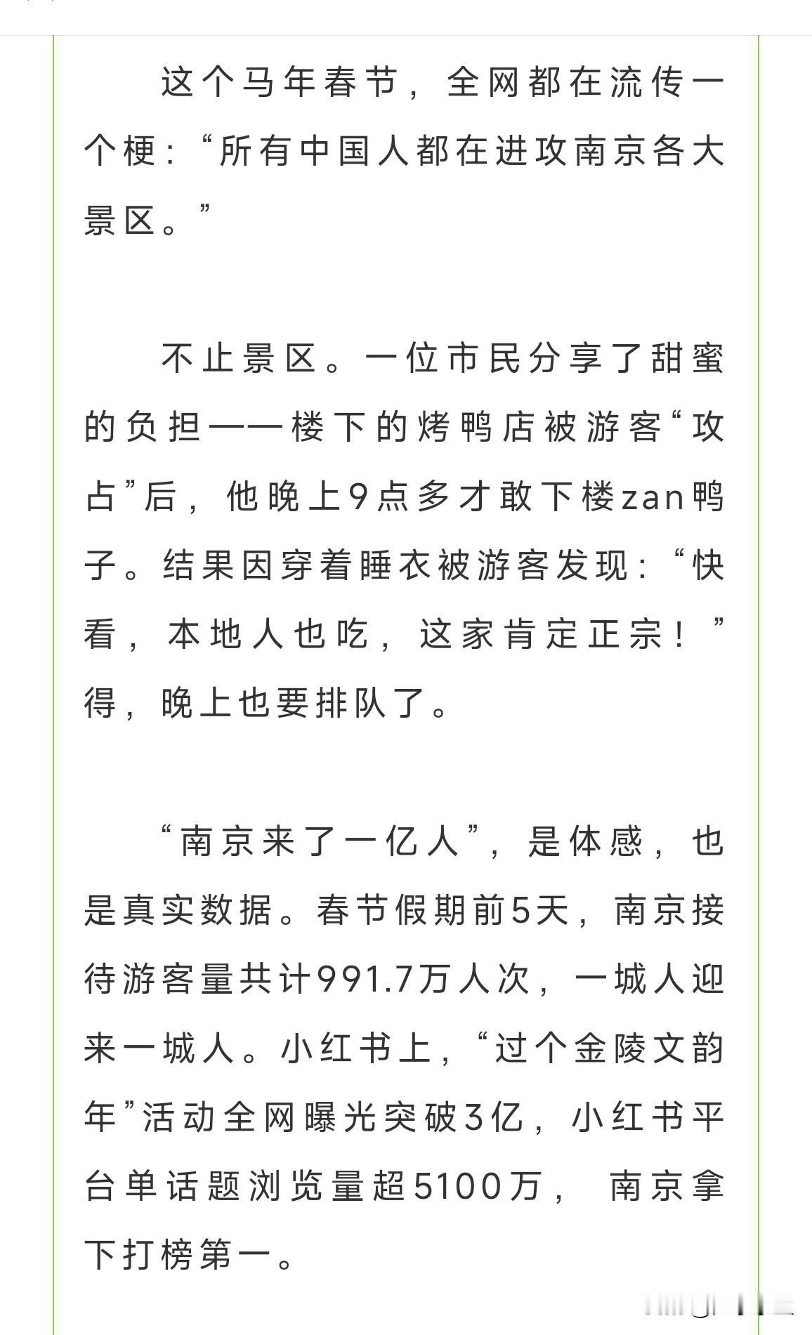 这个马年春节,南京又火了。 全网都在流传一个梗:“所有中国人都在进攻南京各大景区。”