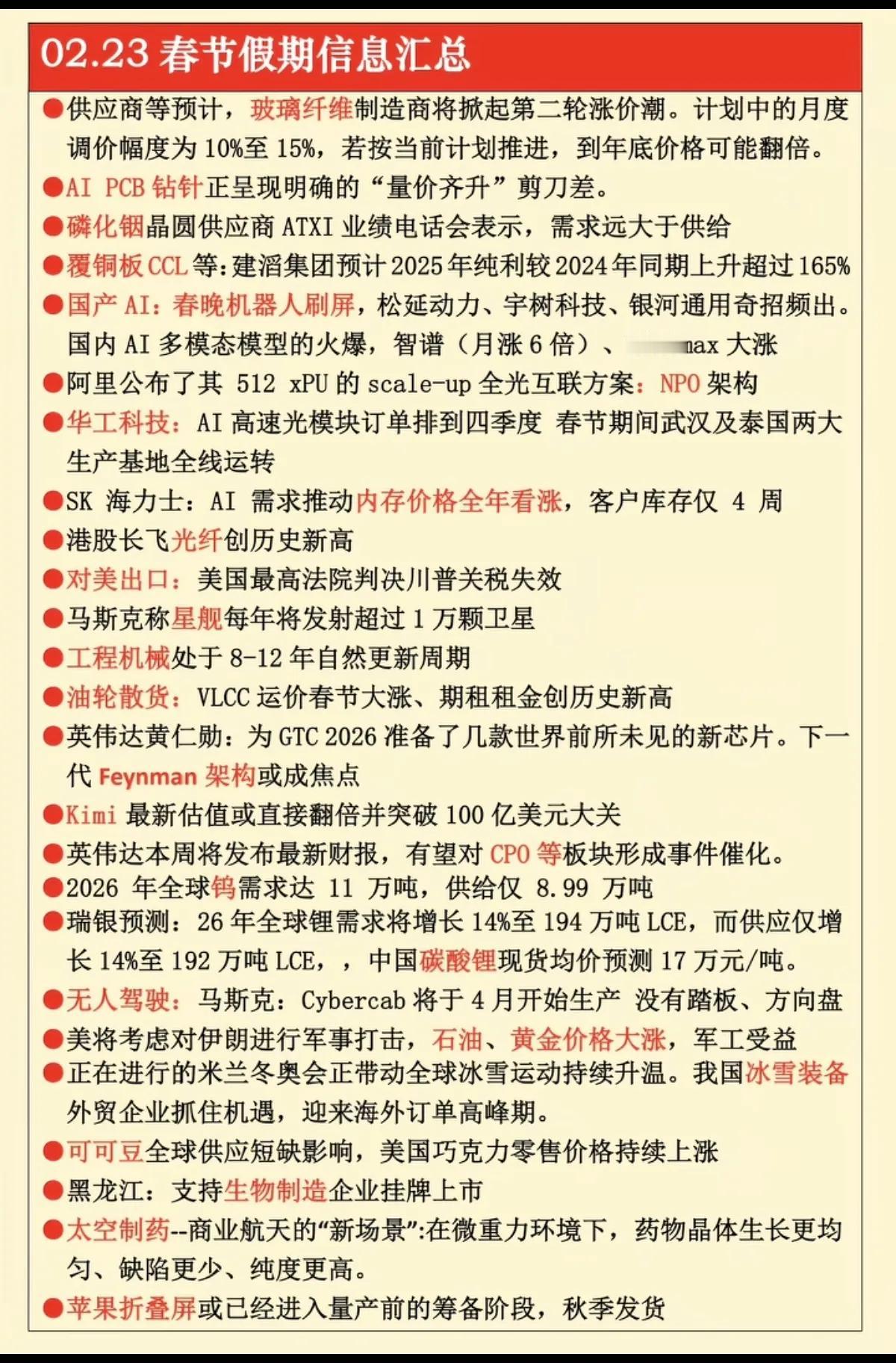 2月23日,周一A股春节重要财经新闻汇总一览表!!!