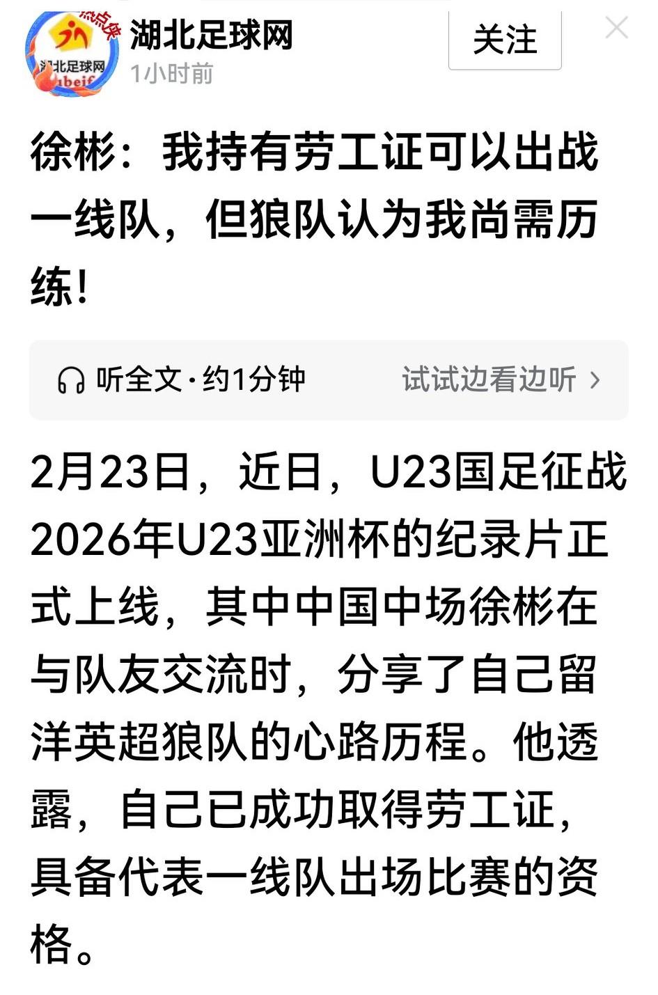 徐彬大喜,亲承已拿到英国劳工证,具备为巴恩斯利一线队出战的资格。那他是怎么做到的呢? 大家都知道,中国球员到英国踢球门槛挺高,尤其是劳工证很难取得,得国家队世界排名进前50位、本人为国家队出场要达75%,对徐彬这样的u21球员,两个条件都不具备。 除此之外就是系列人工审核,英足协认可的联赛、转会费或工资达到上年英超75%等,徐彬更不可能拿到足够分数,但这劳工证似乎没费吹灰之力,网上一查,原来是狼队用了特殊名额。