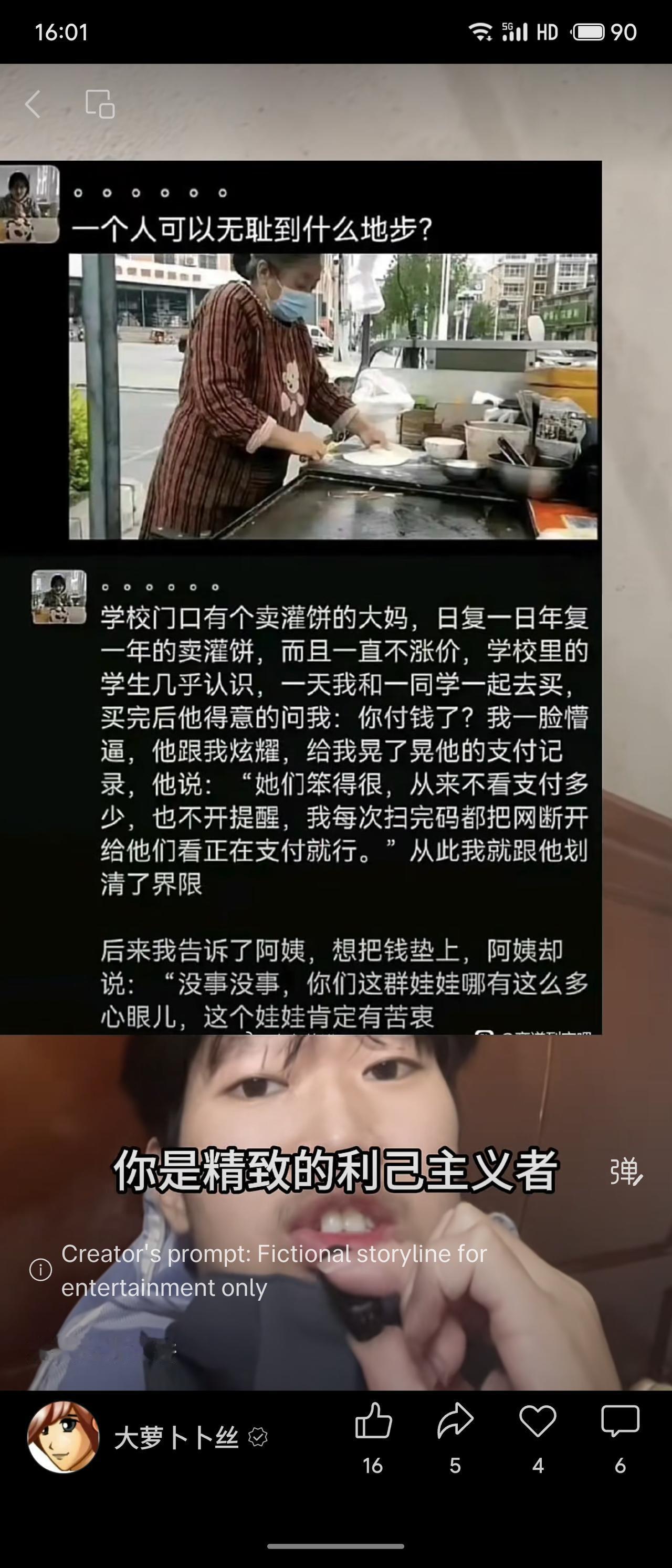学生买灌饼时利用支付漏洞欺骗大妈,还得意炫耀。事后我告知并想垫钱,大妈却宽容地说:“这娃娃肯定有苦衷。”无耻与善良,在此刻对比鲜明。
