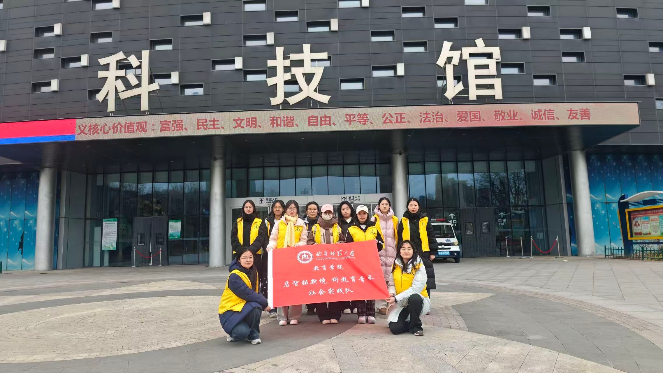 秦岭笑谈【志愿深耕科普阵地,青春点亮科学之光】曲阜师范大学大学生寒假社会实践为践行“科教融合、服务社会”的理念,曲阜师范大学“启智拓新境,科教育青禾”实践队走进济宁市科技馆,开展科普志愿服务与科学体验活动。 实践队员们身披黄黑相间的志愿服,在科技馆前留下青春合影,随后深入馆内互动展区,在多人交互虚拟水流墙前感受数字技术的趣味,又走向亲子体验区,为参与科普活动的家庭提供耐心引导,让孩子们在沉浸式体验中解锁科学密码,在欢声笑语里种下探索的种子。 此次社会实践活动,以志愿行动搭建起科学与大众的桥梁,既让孩子们在亲手操作中亲近科学、爱上科学,也让实践队员在服务他人的过程中,锤炼了专业能力,彰显了青年担当,让青春在科普阵地绽放别样光彩。