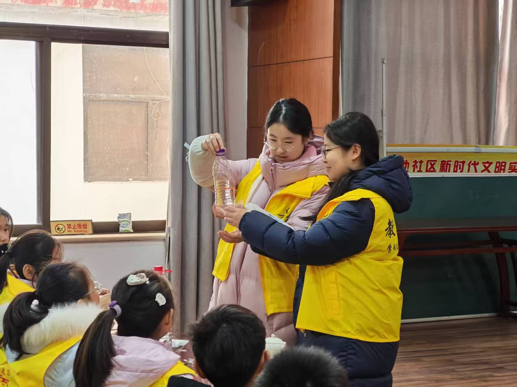 秦岭笑谈 曲阜师范大学大学生寒假社会实践【承志愿星火微光,暖社区童心港湾】 “启智拓新境,科教育青禾”实践队,走进南池社区的新时代文明实践站,为孩子们带去趣味科普与物理文化小课堂。这场实践成为一次温暖入心的成长之旅,彻底拉近了基层社区和童心世界的距离。 走进南池社区实践站活动室的那一刻,孩子们明亮的眼神瞬间让我心生暖意。在科普小课堂上,一双双攥着笔的小手在本子上认真记录,一个个挺直的小身板透着专注与好奇。当我们拿起水瓶演示“水的张力”实验时,孩子们的惊叹声与笑声交织在一起,我突然明白,“志愿实践”并非宏大遥远的口号,它是眼前孩子们眼中闪烁的求知光芒,是社区活动室里流淌的温暖能量,是我们与孩子之间心与心相连的真切纽带。 从记录知识点的专注脸庞到围坐聆听的期待模样,每一个生动的瞬间都让我倍感珍惜,每一声童真的提问都让我收获满满。我不再是课堂之外的旁观者,而是成为了孩子们眼中的“大姐姐”与同行者。我深刻认识到,社区服务从来都不是书本里抽象的概念,它是孩子笔尖划过纸面的沙沙声,是实验瓶中晃动的水花,是我们与社区携手播撒的希望种子,是一代代青年传递温暖的接力棒。