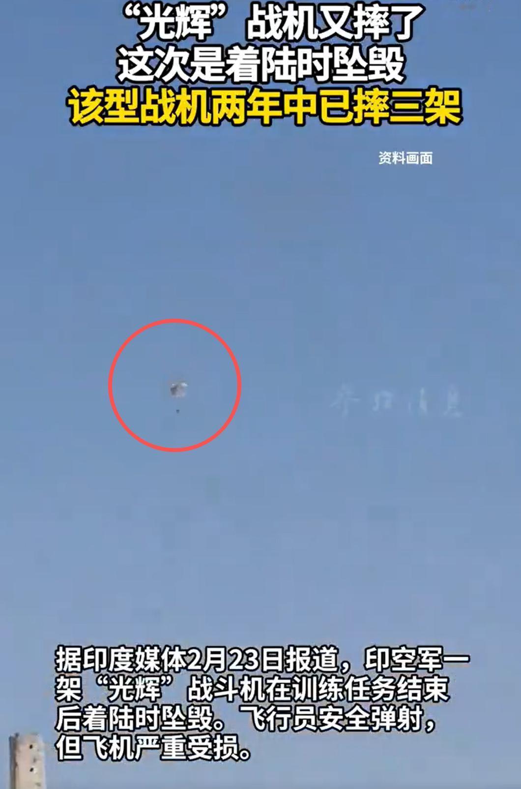 又是印度,又是光辉战机。 坏消息是,印度的光辉战机又摔了,而且是两年内摔的第三架。 好在,飞行员成功跳伞。 不得不说,光辉战机是真差,但是座椅弹射还是不错的。 当然了,光辉战机还是有一个好消息的,那就是从来没有败绩,也就是说,从来没有被击落过。在这一点上,光辉战机比阵风强多了。