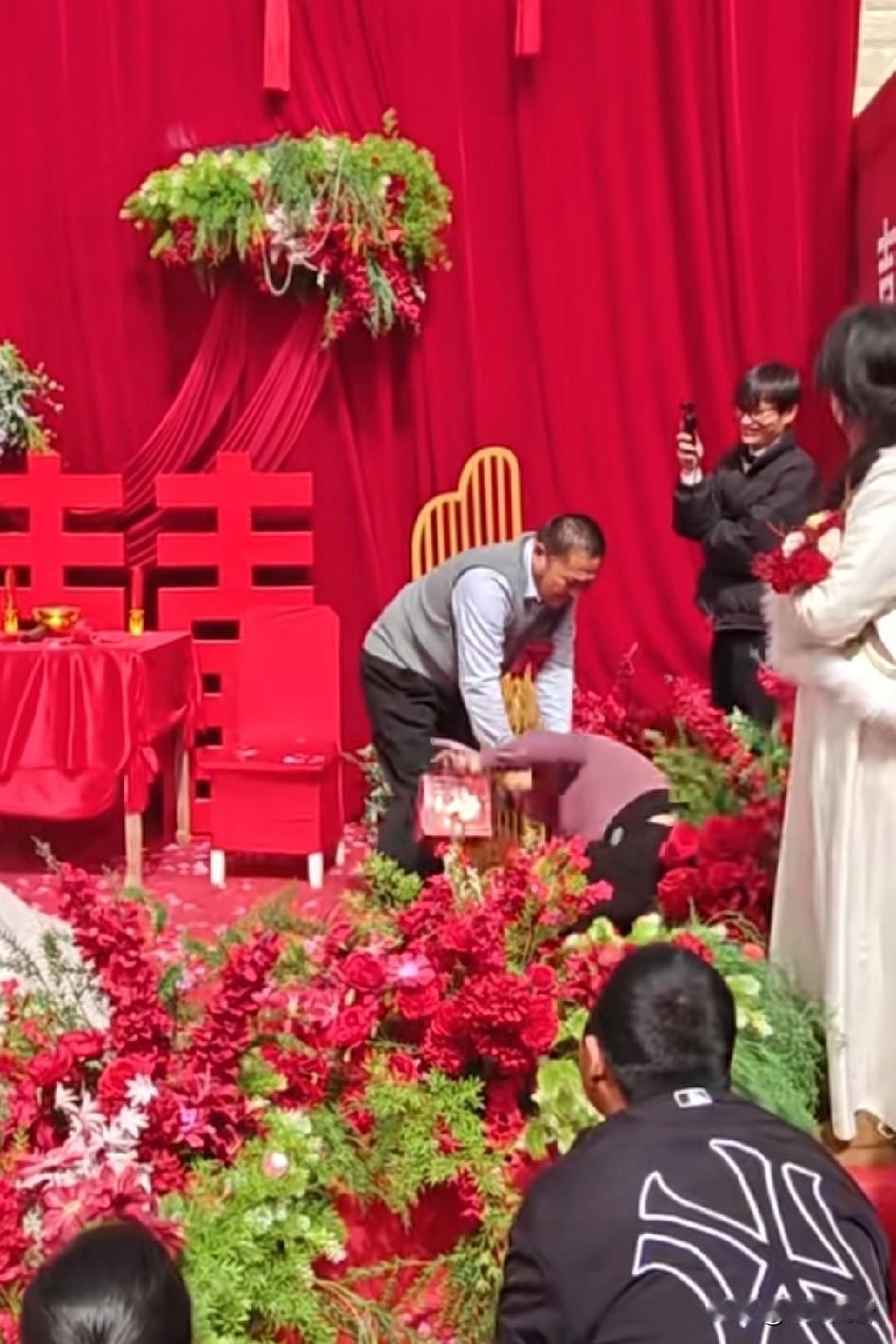 主持人给她说等一会在抹,太太着急了,最后还是让她抹上了,开玩笑也要有个度 支持喜公公,这个女的就是耍彪,自讨没趣。人家举行仪式,多么神圣庄重的时刻,她不分时候的上去闹。想闹等人家下去,想问你闹都行,婚闹,咋也都等人家仪式完了再闹。 我们这儿也是用锅底黑灰伴辣椒粉擦脸,喜公公,喜婆婆,新郎媒婆都要被擦脸。就有不知深浅的那种人,啥玩笑都想开不看场合,有的人不喜欢这样,看下次还玩不