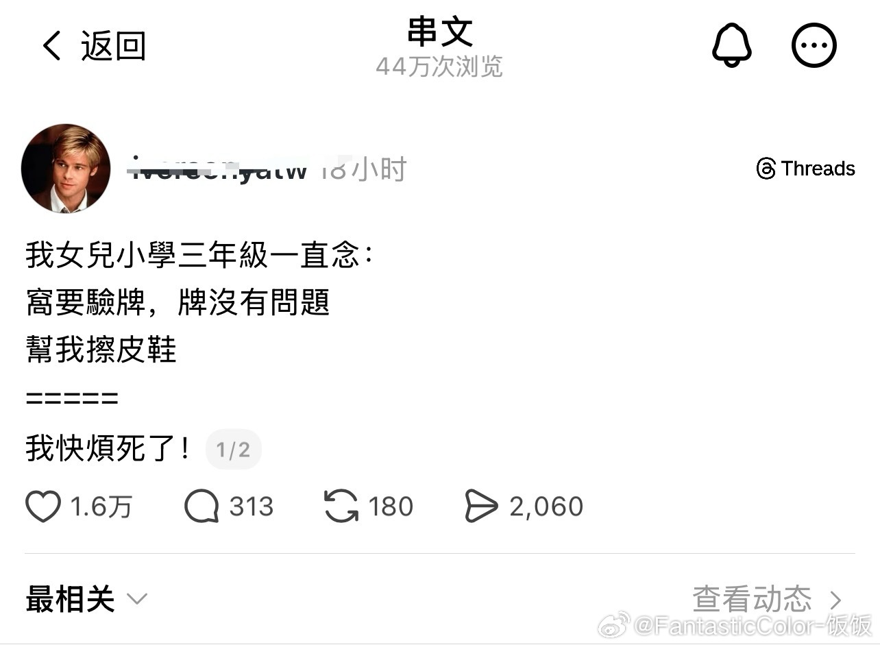 台湾网友吐槽,他们家上三年级的女儿挂在嘴边的口头禅:窝要验牌,牌没有问题