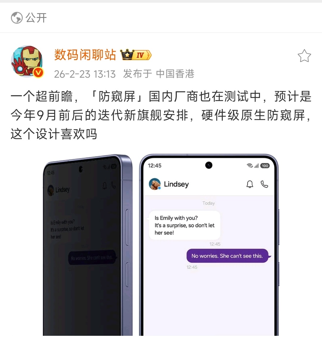 曝国内厂商正测试防窥屏之前有防窥膜,现在要有防窥屏了,有总比没有的好!
